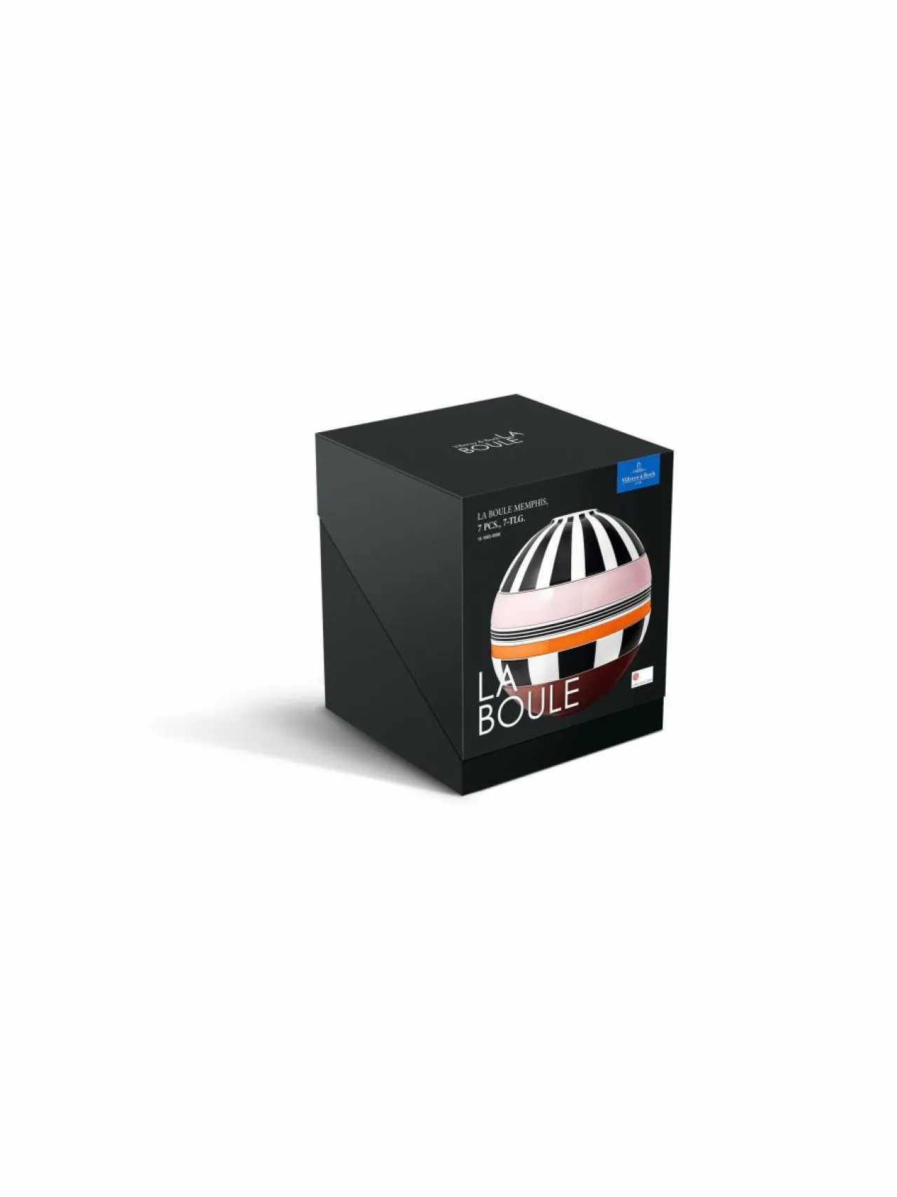 Iconic La Boule Memphis on rohkea ja erottuu minimalistisesta mustavalkoisesta versiosta. Se on todellinen deisgn-ikoni leikkisine kontrastiväreineen. Iconic La Boule on todellinen posliininvalmistuksen taidonnäyte, sillä se muodostaa pinottavan kahden hengen seitsemänosaisen astiaston (kaksi kulhoa, kaksi matalaa kulhoa, kaksi lautasta ja tarjoilulautanen).