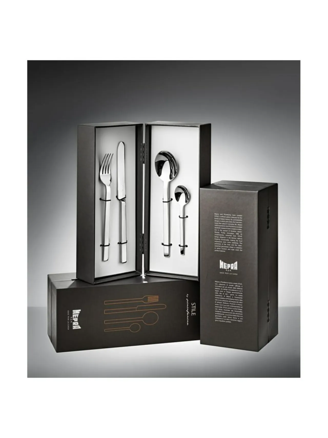 Kuuluisan italialaisen automuotoilijan Pininfarinan suunnittelema Stile-sarja on sekä ajaton että moderni. Good Design Award 2019 ja Red Dot Award 2018 -voittaja. Aterinsetti sisältää kuusi ruokahaarukkaa, kuusi ruokaveistä, kuusi ruokalusikkaa ja kuusi kahvilusikkaa. Konepesunkestävää korkealaatuista suomalaista ruostumatonta terästä.