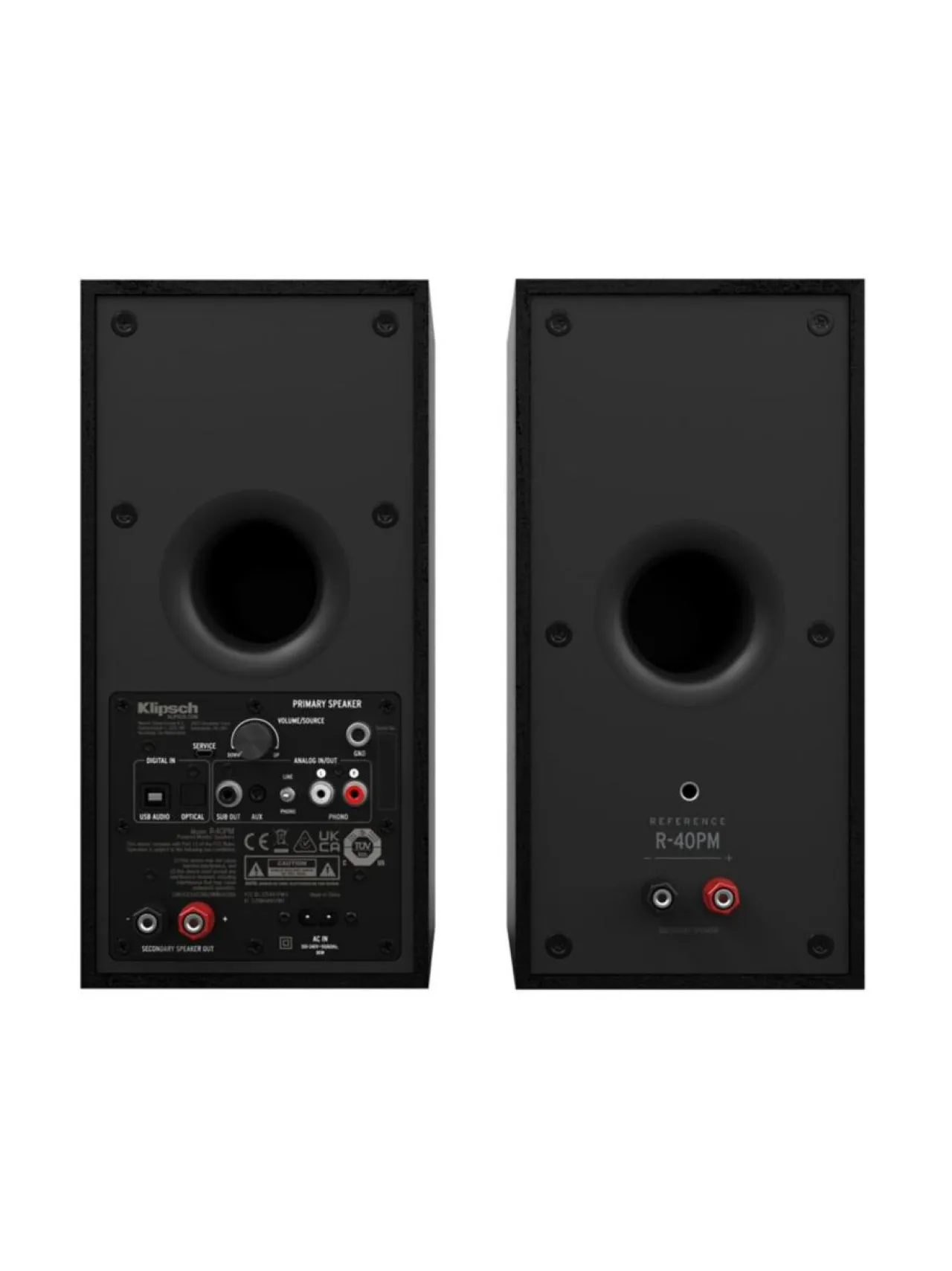 R-40PM-virtakaiuttimet voidaan liittää Bluetooth®:n kautta musiikin suoratoistoon, phono (maadoitusruuviliitännällä) levysoittimille sekä digitaalisesti ja analogisesti kaikkeen siltä väliltä. Ja koska Klipschin insinöörit ovat rakentaneet sisään räätälöidyn vahvistimen, saat täydellisesti viritetyn äänielämyksen – audio/videovastaanotinta (AVR) ei tarvita.