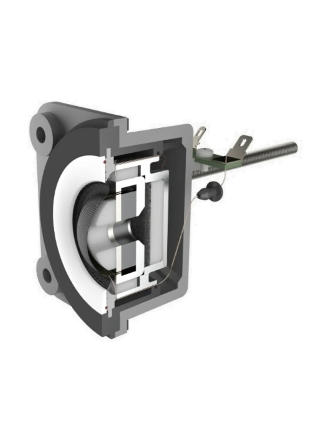 Sekä 5 tuuman mid-/bassoelementti että 1 tuuman diskanttielementti on suunniteltu tärkeäksi osaksi kotelon mekaanista rakennetta. Elementit kiinnitetään jäykkään 3 mm:n alumiinilevyyn ennen kokonaisuuden asentamista koteloon. Tämä antaa oikean akustisen tiivistyksen, vaimentaa värinää ja minimoi rakenteellisen kytkennän.Diskanttielementti on ilmatiiviisti suljettu ja mekaanisesti eristetty (kelluva) etulevystä, mikä tarkoittaa pienempää säröä ja alempaa jakotaajuutta, saumattoman toiston varmistamiseksi jakoalueella. Mid-/bassoelementin suuri 30,5 mm puhekela parantaa moottorin voimaa, mikä johtaa 50 % parempaan tehonkestoon verrattuna vastaavan kokoisissa elementeissä tyypillisesti käytettyyn 25,4 mm puhekelaan.