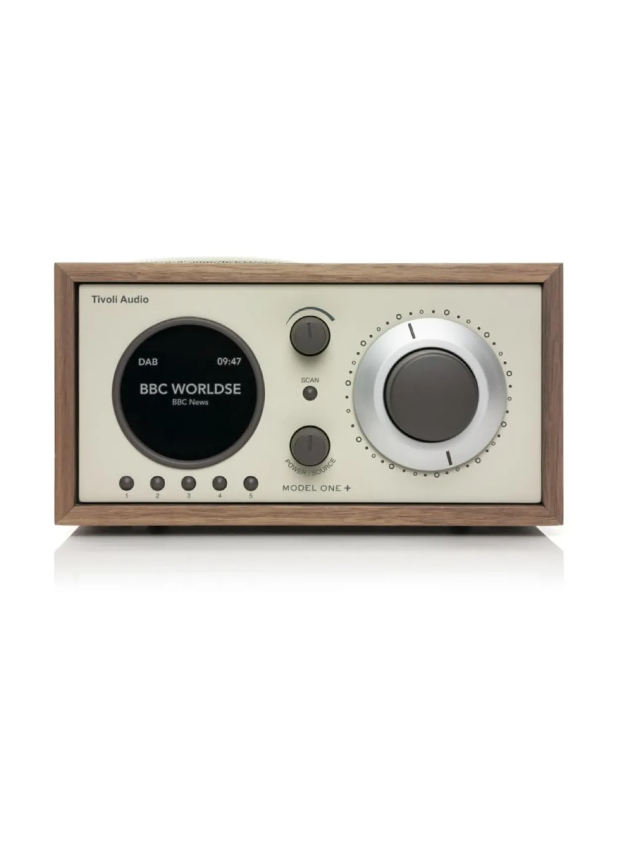 Model One+:n yksinkertainen ja klassinen muotoilu luo tasapainon DAB/DAB+:n digitaalisten ominaisuuksien ja perinteisen radion helppokäyttöisten hallintalaitteiden välille.