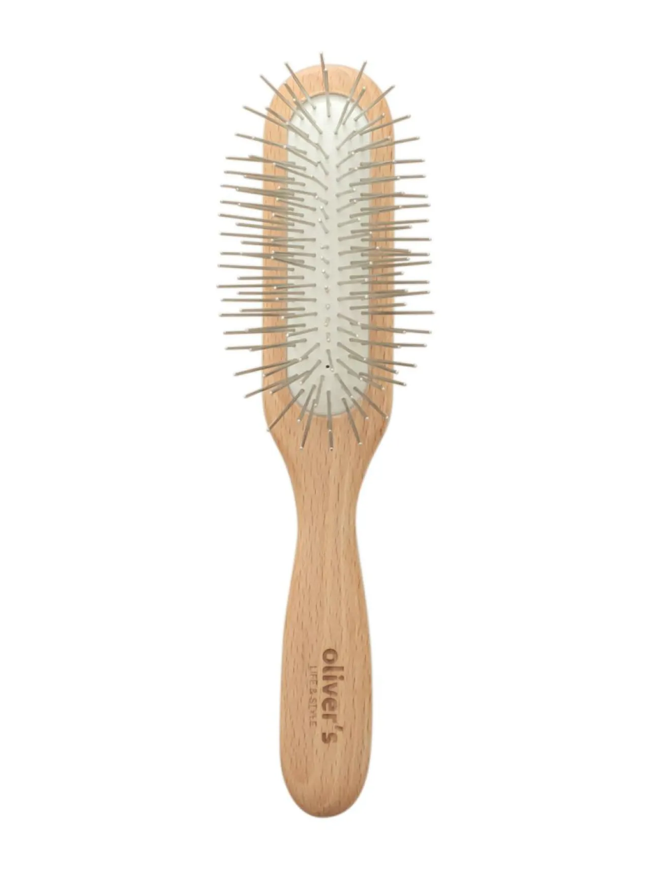 Oliver’s Life & Stylen laadukkaassa puuvartisessa metallipiikkiharjassa on pitkät metallipiikit (33mm), jotka on istute…