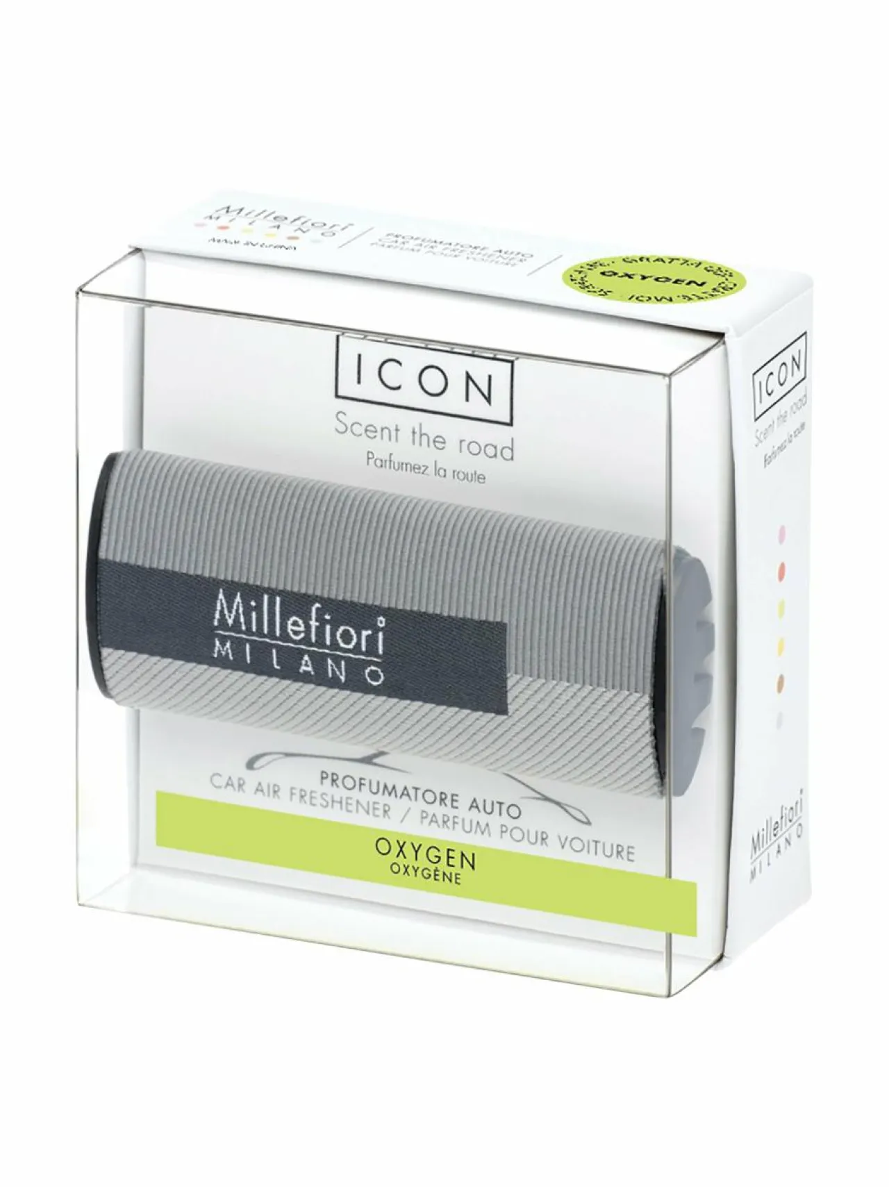 Huonetuoksut & Tuoksukynttilät|Millefiori Textile Geometric 46 Icon Oxygen -ilmanraikastin autoon GREY