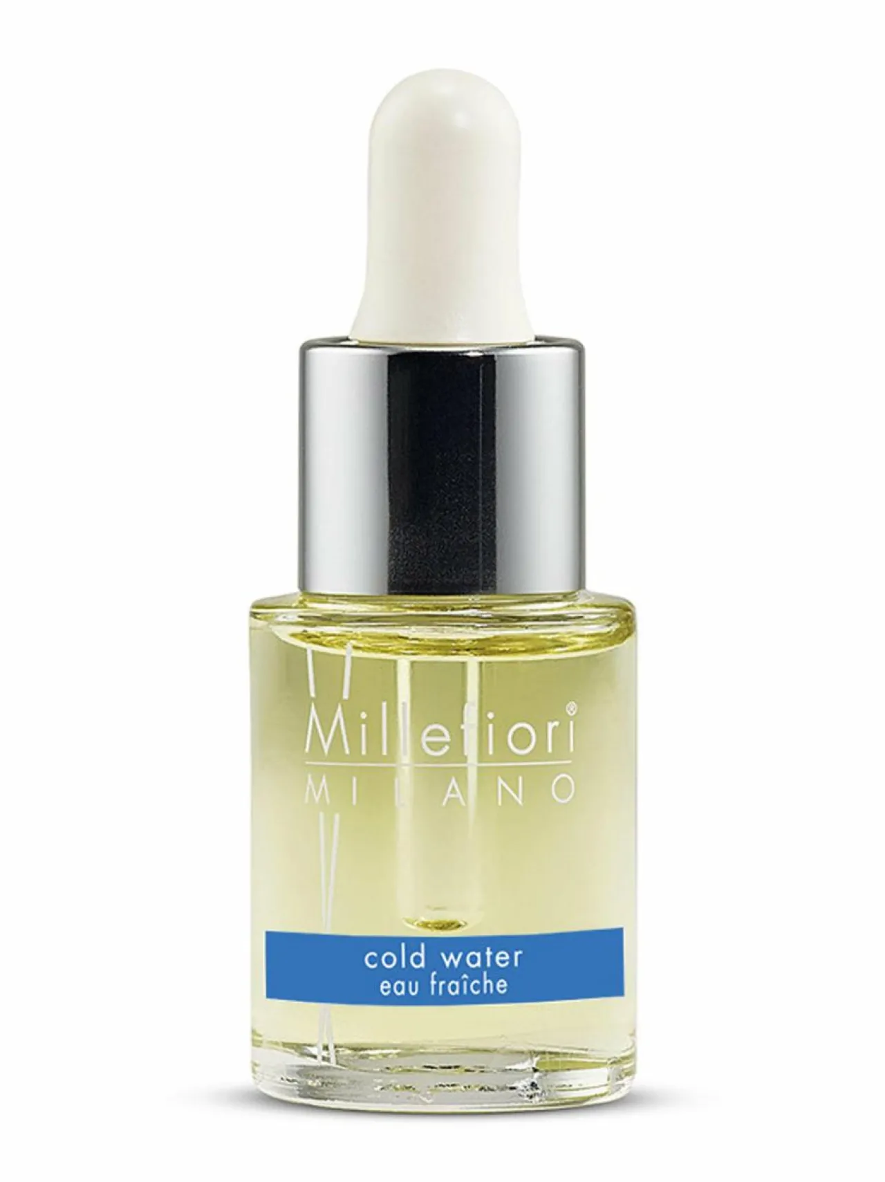 Vesiliukoinen Cold Water -huonetuoksu on tarkoitettu käytettäväksi Millefiorin ultraääniteknologiaa hyödyntävässä Hydro-diffuuserissa, joka levittää ympärilleen miellyttävästi tuoksuvaa höyryä. Pullossa on pieni pipetti, jonka avulla tuoksua on helppo annostella vain muutama tippa veteen laimennettavaksi.