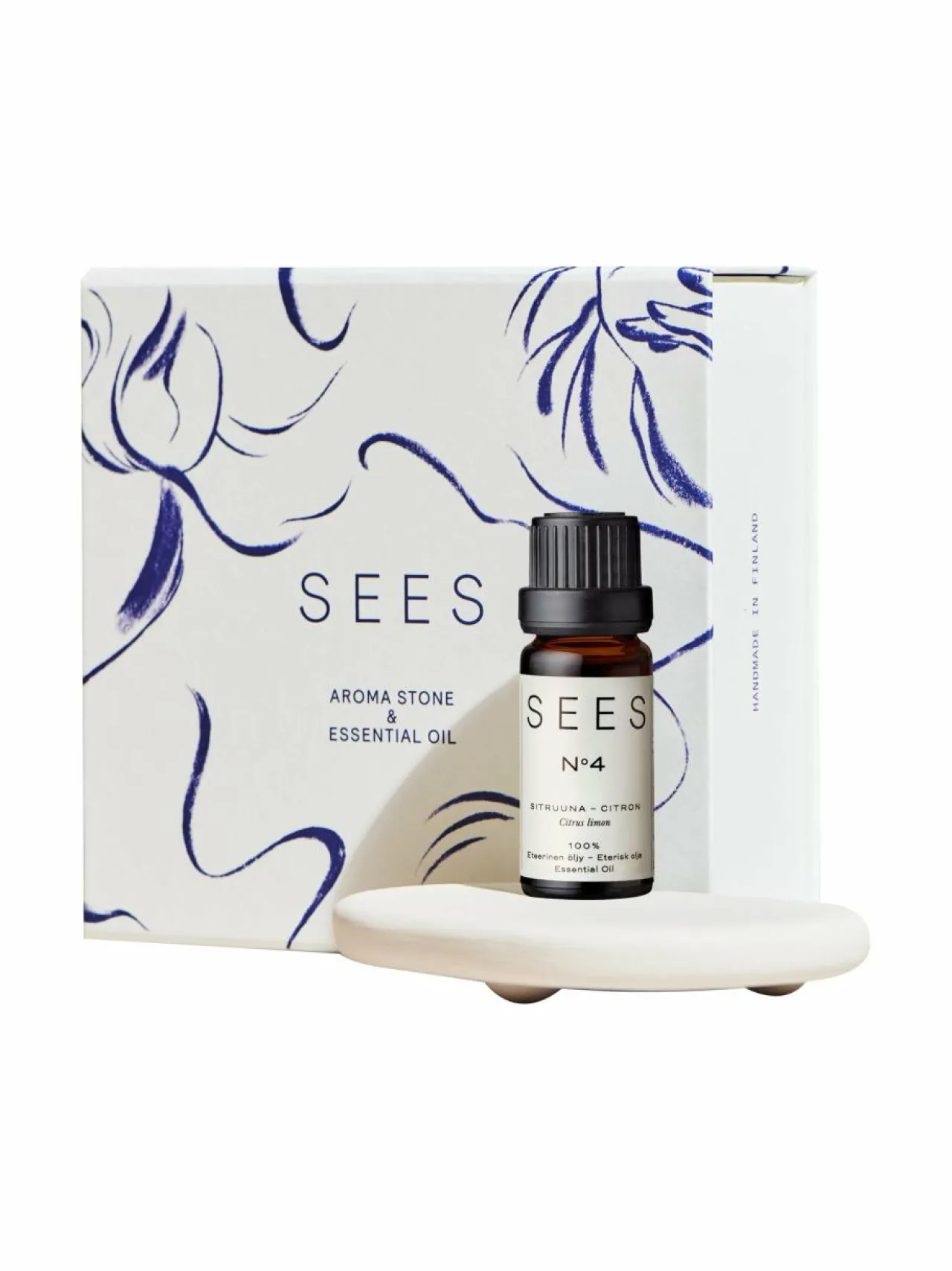 Sees-tuoksukivi on Suomessa käsin tehty eteeristen öljyjen keraaminen diffuuseri eli haihduttaja. Pakkauksen mukana tuleva sitruunan eteerinen öljy virkistää ja raikastaa ilman ja mielen.