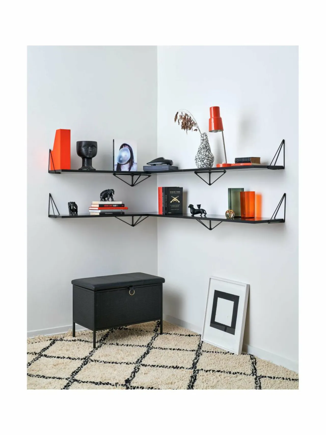 Ruotsalaisen Mazen Pythagoras-sarja sisältää seinähyllyjä, kiinnikkeitä ja paljon muuta. Kokoa kokonainen hyllyjärjestelmä tai laita seinälle yksi hylly, johon asetat esille rakkaimmat muistosi. Voit valita eri väreistä, määrästä ja kulmista – Pythagoras-sarja sisältää loputtoman määrän vaihtoehtoja.