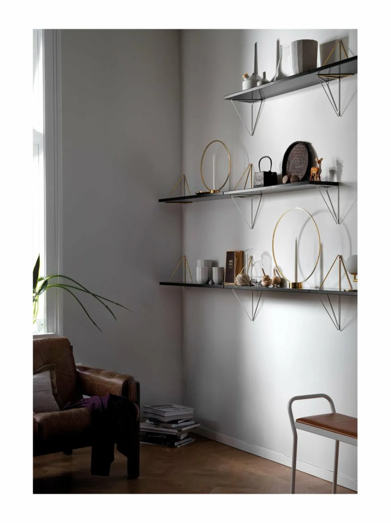 Ruotsalaisen Mazen Pythagoras-sarja sisältää seinähyllyjä, kiinnikkeitä ja paljon muuta. Kokoa kokonainen hyllyjärjestelmä tai laita seinälle yksi hylly, johon asetat esille rakkaimmat muistosi. Voit valita eri väreistä, määrästä ja kulmista – Pythagoras-sarja sisältää loputtoman määrän vaihtoehtoja.