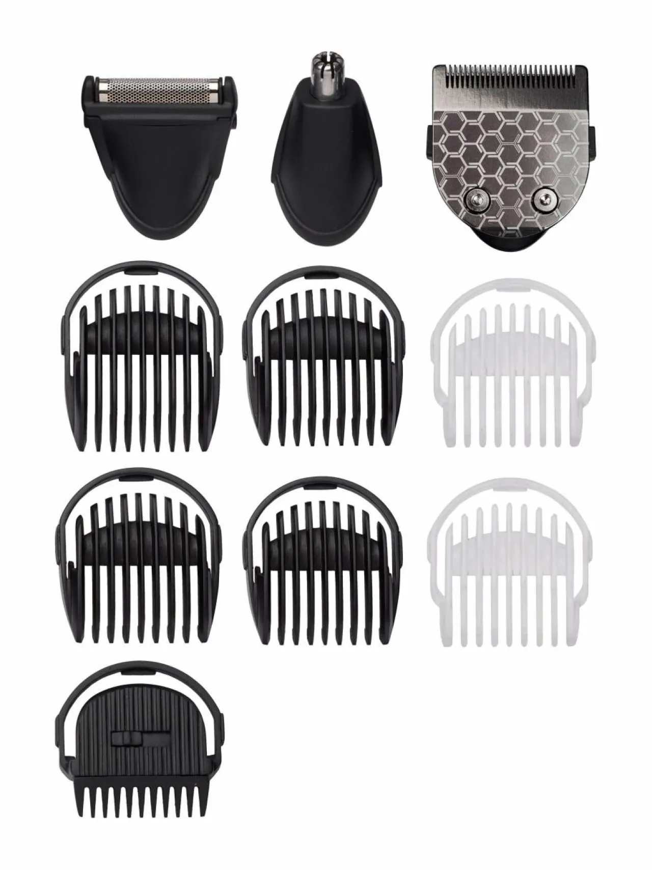 BaByliss MT728E 10-in-1 -trimmerillä siistit niin hiukset, parran kuin vartalonkin karvoituksen. Useat eri ajopäät mahdollistavat erinomaisen ajelun.