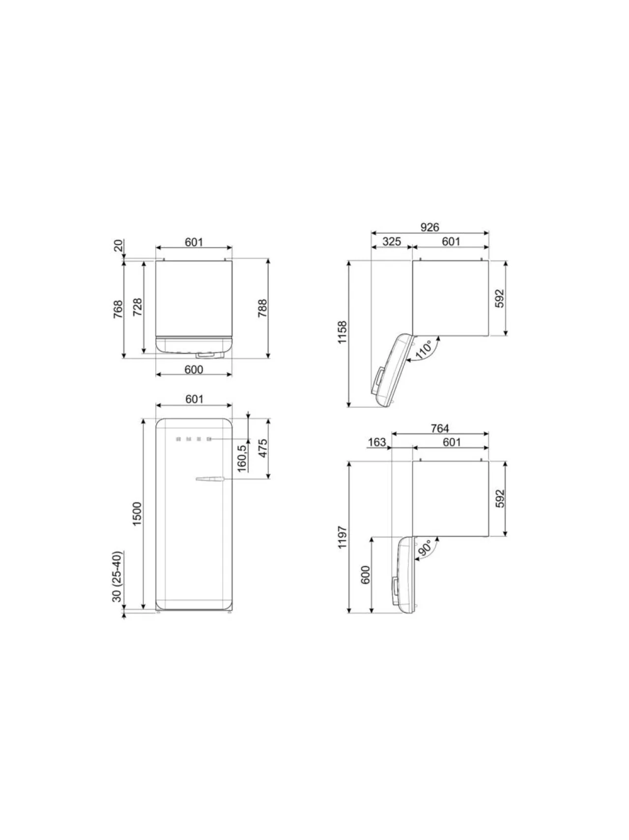 Jääkaapit Ja Pakastimet|Smeg FAB28LBL5 Jääkaappi, musta vasenkätinen