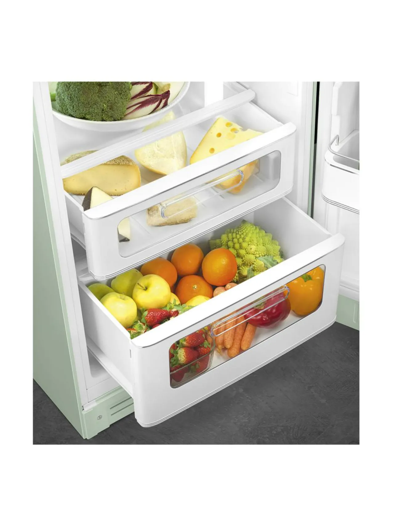 Smegin 50-luvun retromallisto noudattaa tyylikkäästi klassista muotoilua, jonka kaarevat linjat ja laaja värivalikoima yhdistyvät täydellisesti huippuluokan moderniin teknologiaan. Voidaan sanoa, että tämä Smegin sisäisen suunnittelustudion kehittämä tuotelinja on ratkaisevasti muuttanut kodinkoneita koskevaa ajattelutapaamme. Tavanomaiset, massatuotetut vapaasti seisovat koneet ovat saaneet tehdä tilaa näille todellisille tyyli-ikoneille.