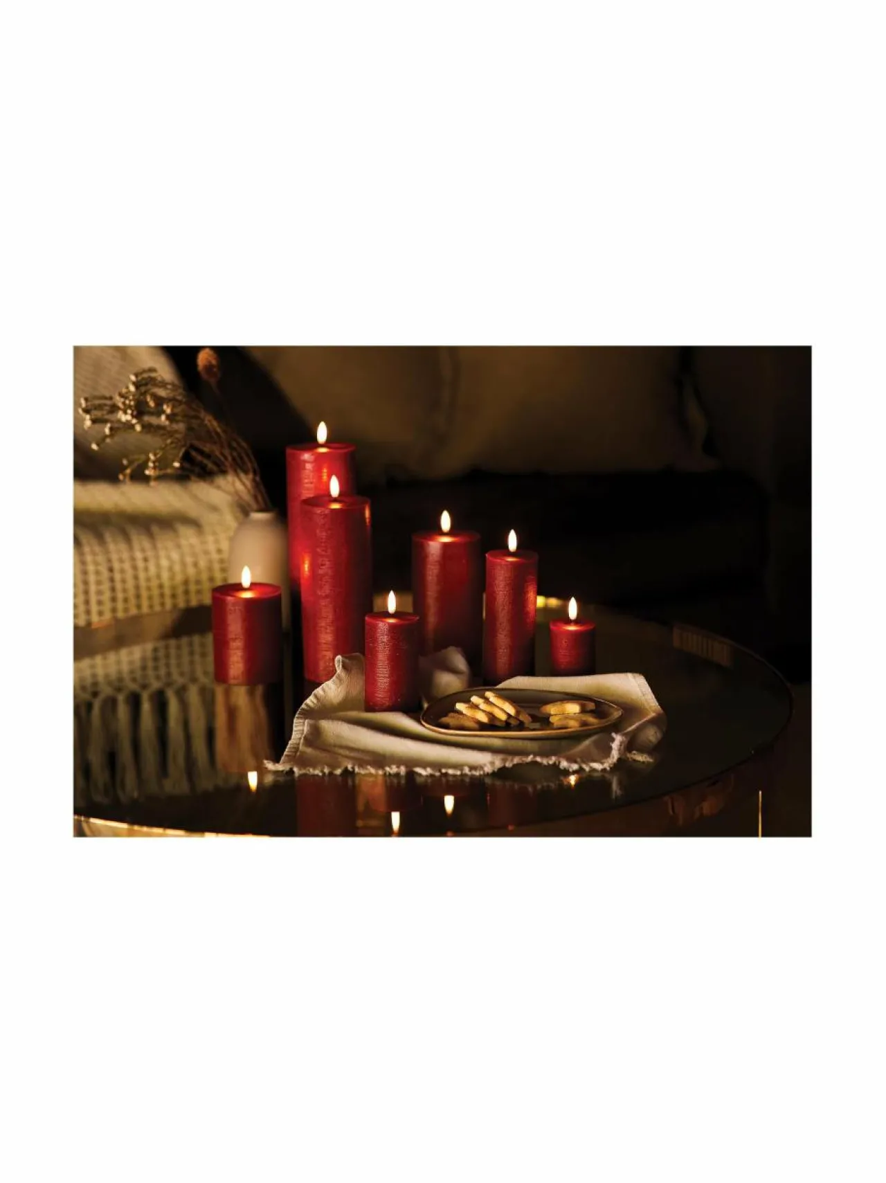 LED-pöytäkynttilän patentoitu 3D-liekki luo kutsuvan ja lämpimän tunnelman. Paristoilla (2 x C) toimiva kynttilä on turvallinen ja päästötön vaihtoehto perinteiselle kynttilälle. Paloaika noin 1000 tuntia. Kynttilässä on sisäänrakennettu kuuden tunnin ajastin. Ajastusta ja himmennystä voi kontrolloida myös erikseen myytävällä kaukosäätimellä. Paristot eivät sisälly pakkaukseen.