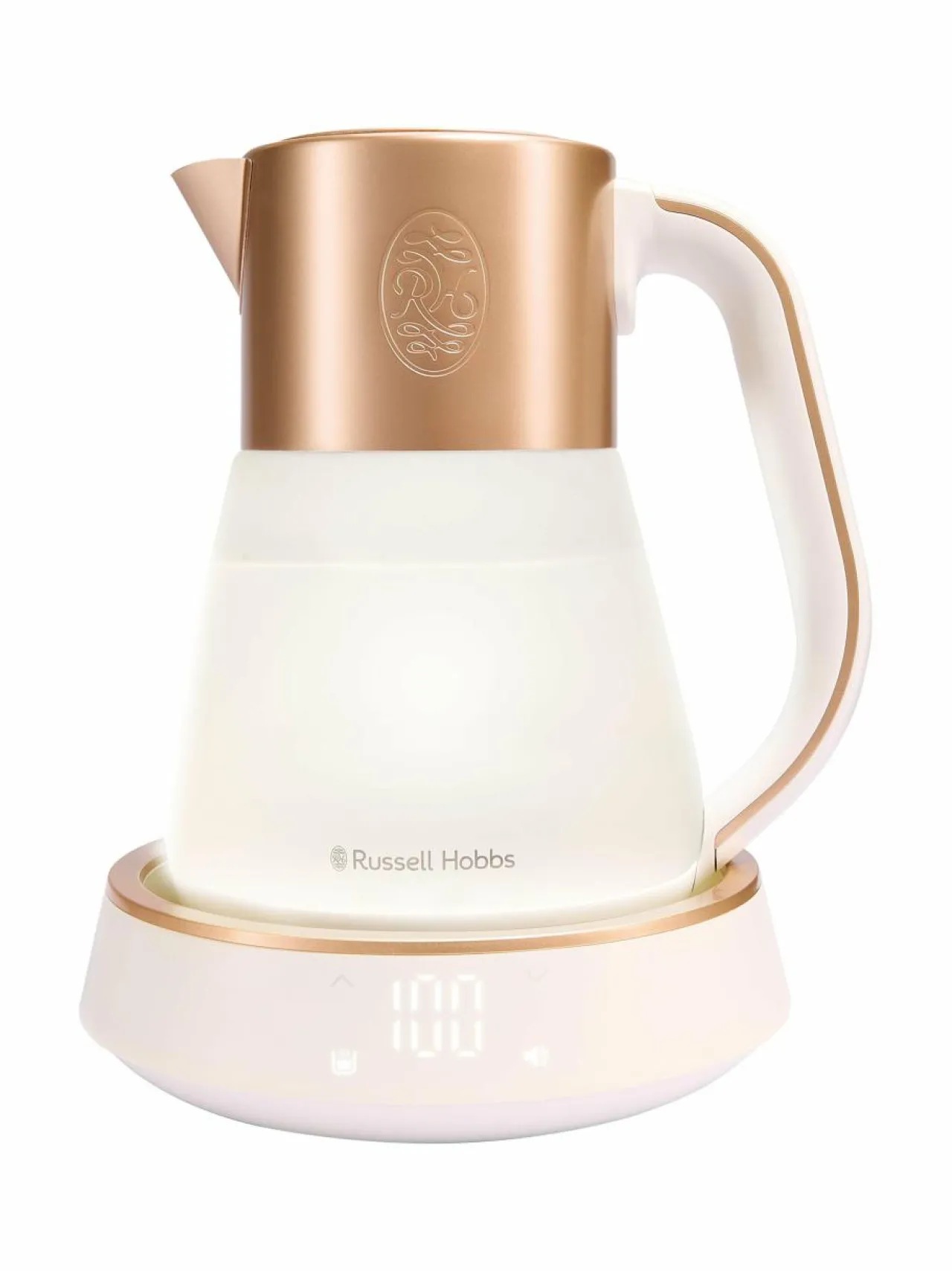 Vedenkeitin on valmistettu ylellisestä huurretusta lasista, ja sitä koristavat tyylikkäät kupariset yksityiskohdat. Esteettisesti miellyttävässä vedenkeittimessä on pehmeät valot, jotka vaihtelevat eri värisävyissä kiehumisen aikana, ja huipentuvat rauhoittavaan pehmeään valkoiseen hehkuun lämpimänäpitojakson aikana.