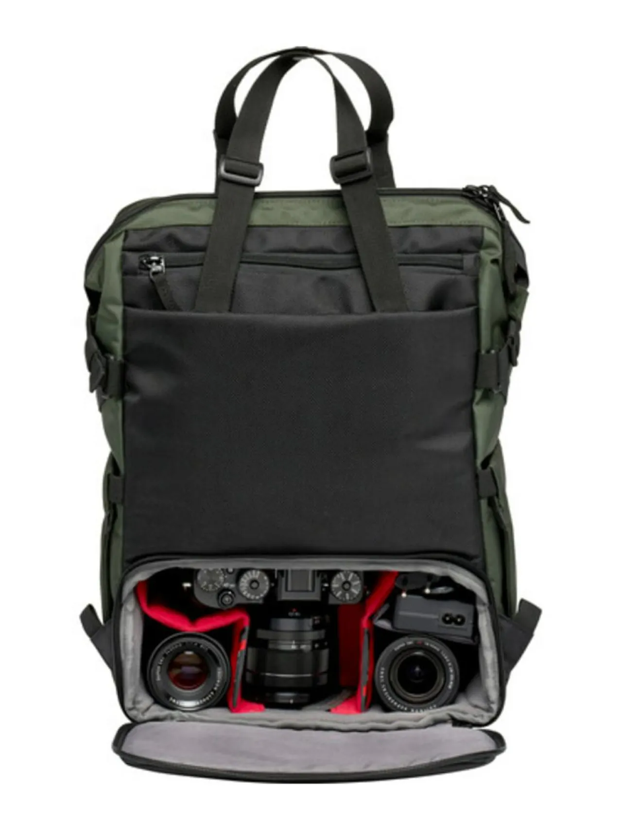 Laukku ei näytä tavanomaiselta kameralaukulta, se on piirre jota monet arvostavat kulkiessaan kaupungilla. Koko on pidetty sopivan kokoisena jokapäiväiseen käyttöön töihin tai vapaa-aikaan. Yläosan vetoketju aukeaa kokonaan siten, että pääset tavaroihin helposti käsiksi. Laukku muuttuu hetkessä myös repuksi kun otat piilotetut olkahihnat esiin.