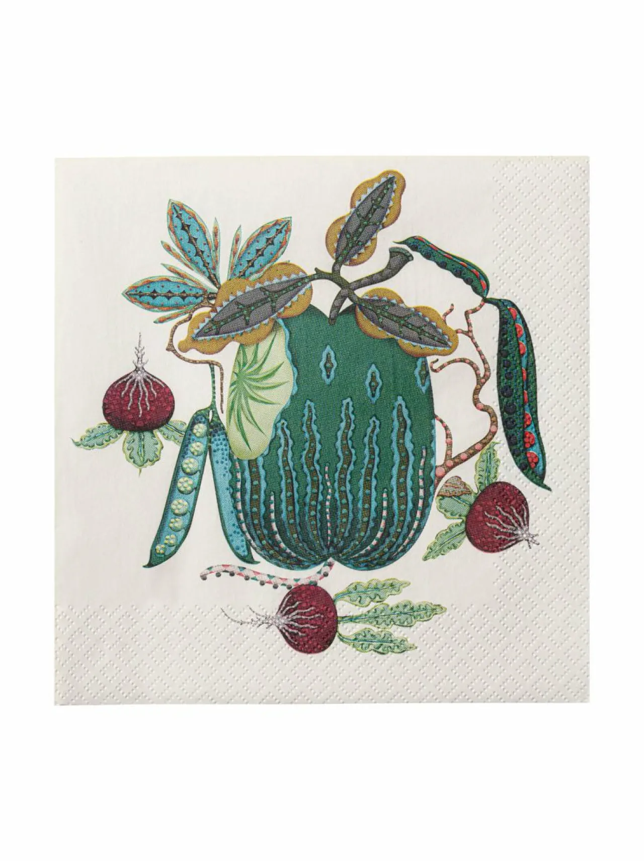 Taika Sato -paperiservetit ammentavat inspiraationsa asetelmallisesta maalaustaiteesta sekä erilaisista mielenkiintoisista vihanneksista ja hedelmistä. Paperiservettien on kooltaan 33 x 33 cm, mikä tekee niistä monipuolisen valinnan erilaisiin kattauksiin. Voit käyttää niitä aamiaispöydässä piristämässä aamuhetkeä tai luoda tyylikkään illalliskattauksen, joka saa vieraasi ihastumaan. Biohajoavat servetit on painettu turvallisilla vesipohjaisilla väreillä Suomessa.