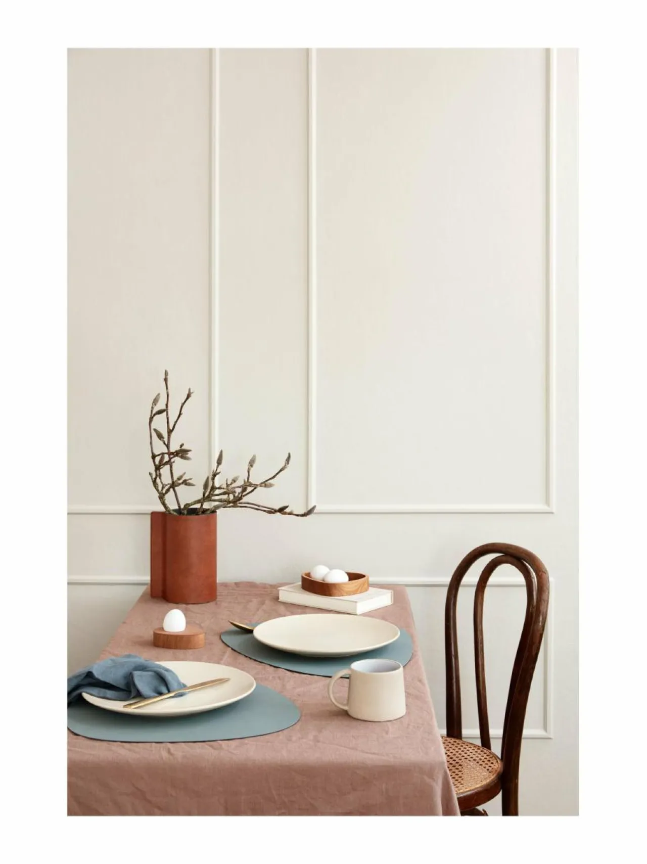 Tanskassa suunniteltu pöytätabletti mokkamaisella pinnalla. Materiaali on kestävää OEKO-TEX -sertifioitua kasviparkittua kierrätysnahkaa, joka on peräisin muoti- ja huonekaluteollisuuden ylijäämistä. Pohja on luonnonkumia, joka estää liukumisen.
