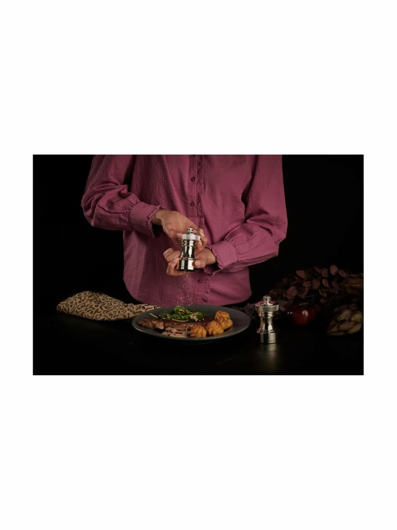 Hoxton-maustemylly ovat tyylikäs ja kompakti ratkaisu pienempiin keittiöihin tai ruokapöydälle. Nämä tyylikkäät maustemyllyt on valmistettu korkealaatuisesta metalliseoksesta ja niissä on hopeapinnoite. Myllyjen korkeus on vain 10,4 cm, joten ne sopivat varsinkin pienempiin tiloihin. Myllyjen jauhatusastetta voi säätää helposti kääntämällä myllyn yläosassa olevaa nuppia. Maustemyllysetti toimitetaan lahjapakkauksessa, jossa on kiillotusliina. Myllyjen jauhatusmekanismit (terävä, korroosionkestävä keraaminen suolalle, Precision+ -hiiliteräs pippurille) ovat elinikäisen takuun alla. Tämä antaa sinulle luottamuksen maustaa ruokia ja tietää, että saat laadukkaan ja tasaisen jauhatuksen kerta toisensa jälkeen. Myllyjen mitat ovat 5,5 x 5,5 x 10,4 cm. Metalliseos on kestävä ja helppohoitoinen materiaali, joka sopii erinomaisesti keittiökäyttöön. Se on myös tyylikäs ja elegantti materiaali, joka antaa myllyille hienostuneen ilmeen. Myllyt ovat täydellinen lahja jokaiselle ruoanlaitosta nauttivalle.
