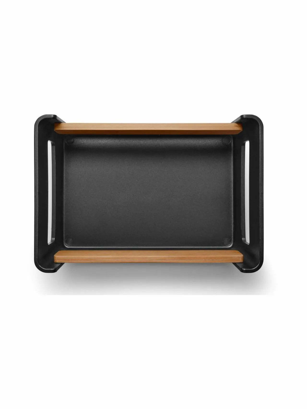 Nordic Kitchen Pantry Crate on käytännöllinen ja monipuolinen säilytyslaatikko, jonka avulla keittiön järjestyksen ylläpitäminen on mutkatonta. Koria voi käyttää keittiötarvikkeiden, vihannesten, hedelmien ja muiden tärkeiden asioiden säilyttämiseen. Sisäänrakennetut kahvat tekevät sen kantamisesta vaivatonta, joten voit ottaa sen mukaasi ostoksille ja matkoille. Säilytysastia on valmistettu kauniista FSC®️-sertifioidusta bambusta ja kierrätysmuovista, jota on helppo puhdistaa.