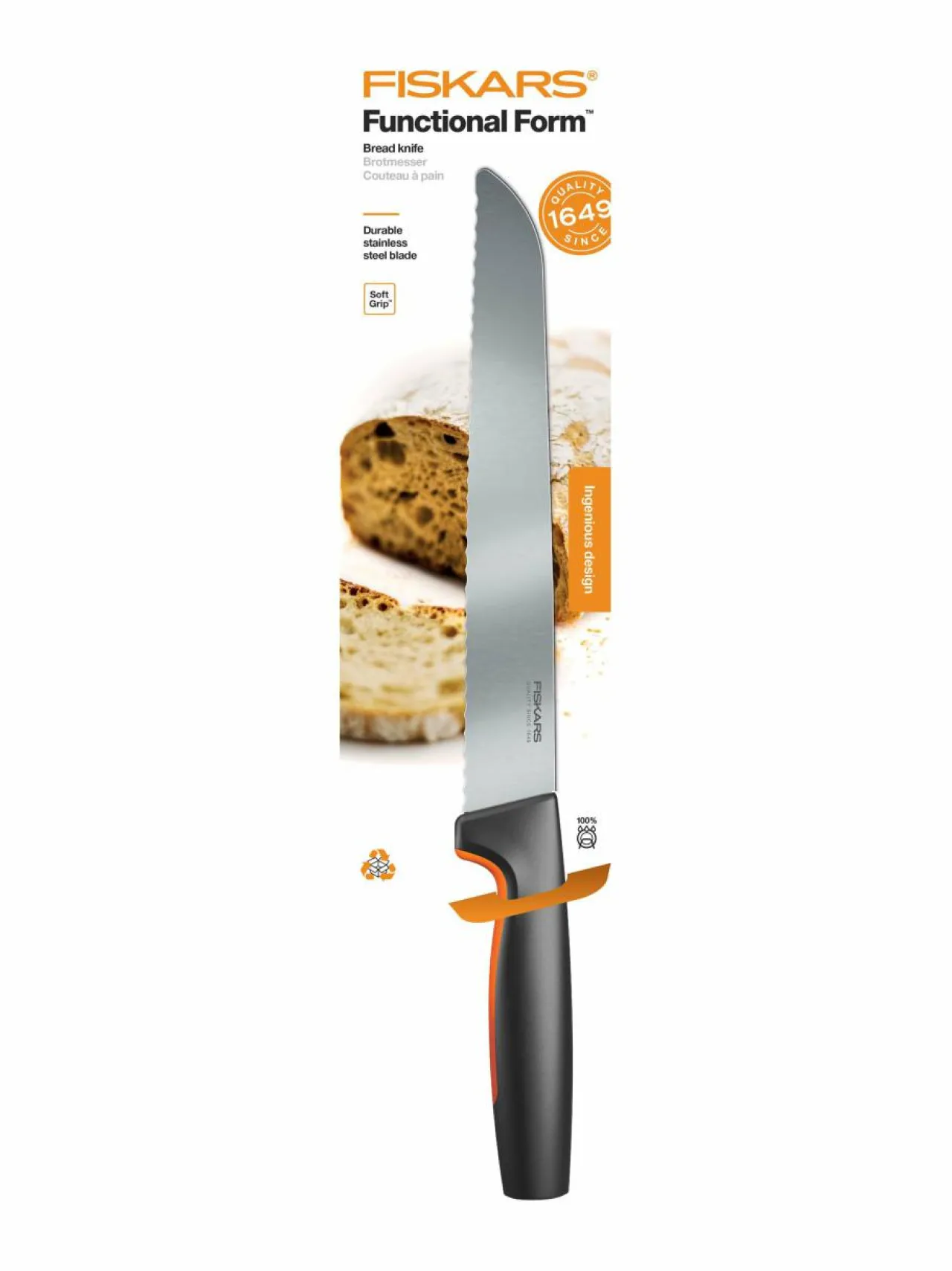 Fiskars Functional Form -leipäveitsessä on pitkä, sahalaitainen terä. Laadukas terä on valmistettu japanilaisesta ruostumattomasta teräksestä, ja kahva on ergonominen ja turvallinen. Veitsi on konepesunkestävä.