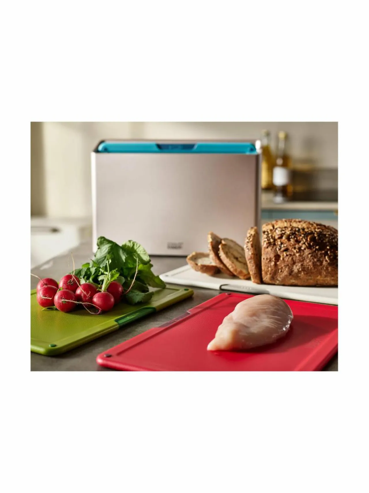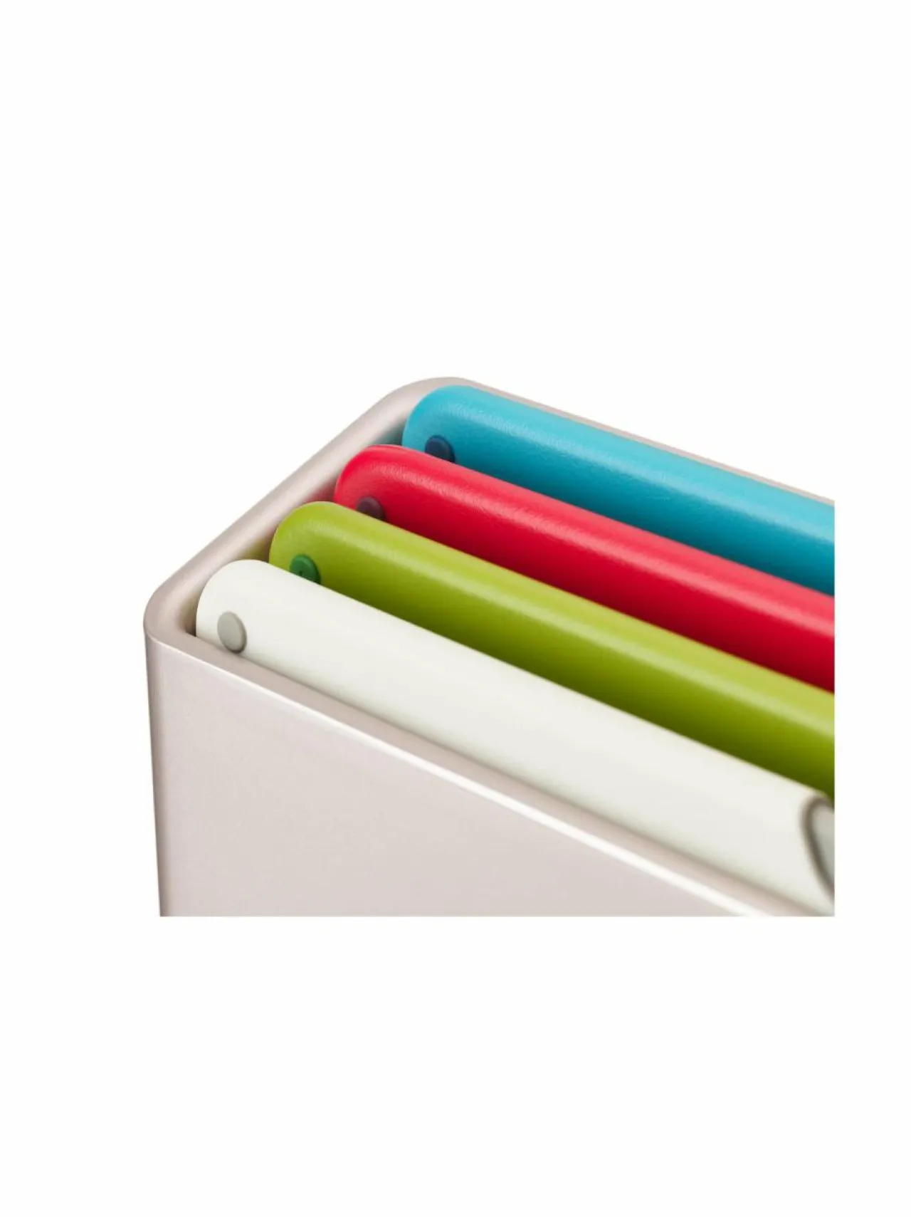 - Tyylikkäästi muotoiltu kotelo pitää jokaisen leikkuulaudan erillään, jolloin ilma pääsee kiertämään