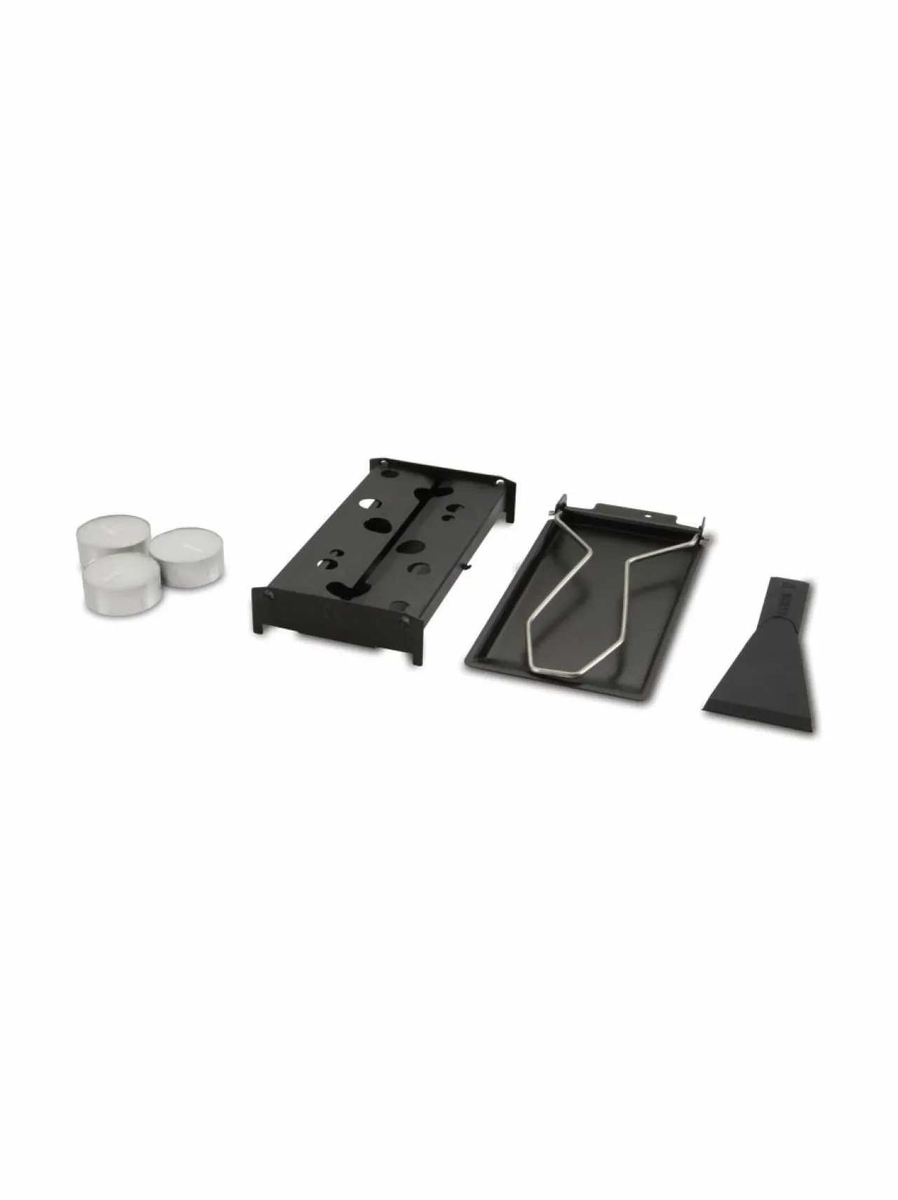 Hauskalla raclettesetillä pidät juustoiset raclettejuhlat missä ja milloin vain. Pakkauksessa on kehikko, raclettepannu, 3 lämpökynttilää ja lasta.