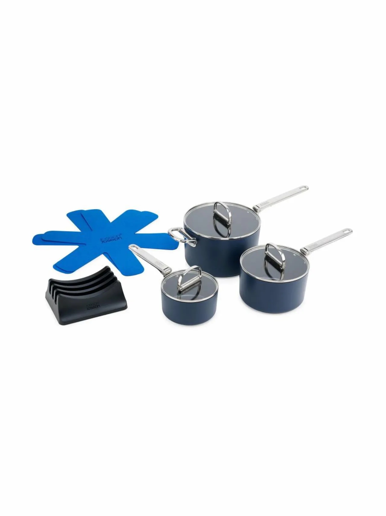 Space™ on Joseph Joseph merkin tilaa säästävä keittiösarja. Tässä Space™ Non-Stick -kattilasarjassa on taitettavat ruostumattomasta teräksestä valmistetut kahvat. Uuninkestävä (232 °C, kansi 200 °C) alumiinirunko myrkyttömällä ja tarttumattomalla keraamisella pinnoitteella sopii kaikille liesille – myös induktiolle. Mukana karkaistut lasikannet, joissa on myös kätevästi taitettavat kahvat. Settiin kuuluu: