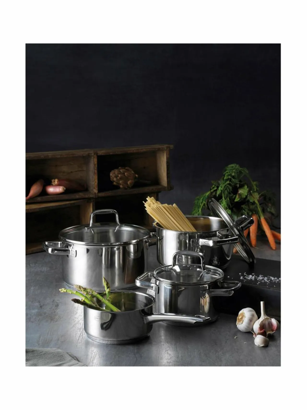 Röslen Moments-kattilasetti sisältää kaiken, mistä kotikokki voi keittiössään unelmoida. Tyylikkääseen kattila…