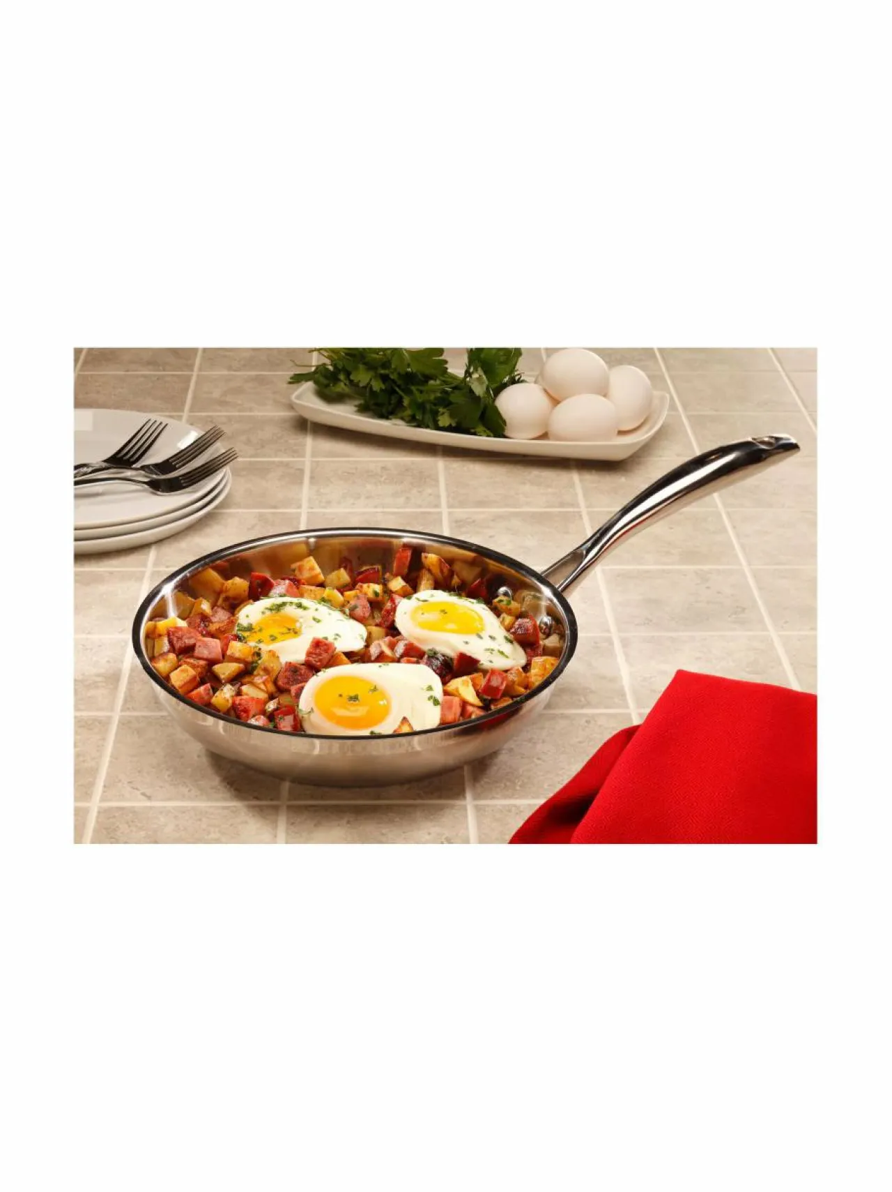 Premium Steel -paistinpannu on kestävää ja lämmön tasaisesti jakavaa 18/10 ruostumatonta terästä. Pinnoittamaton …