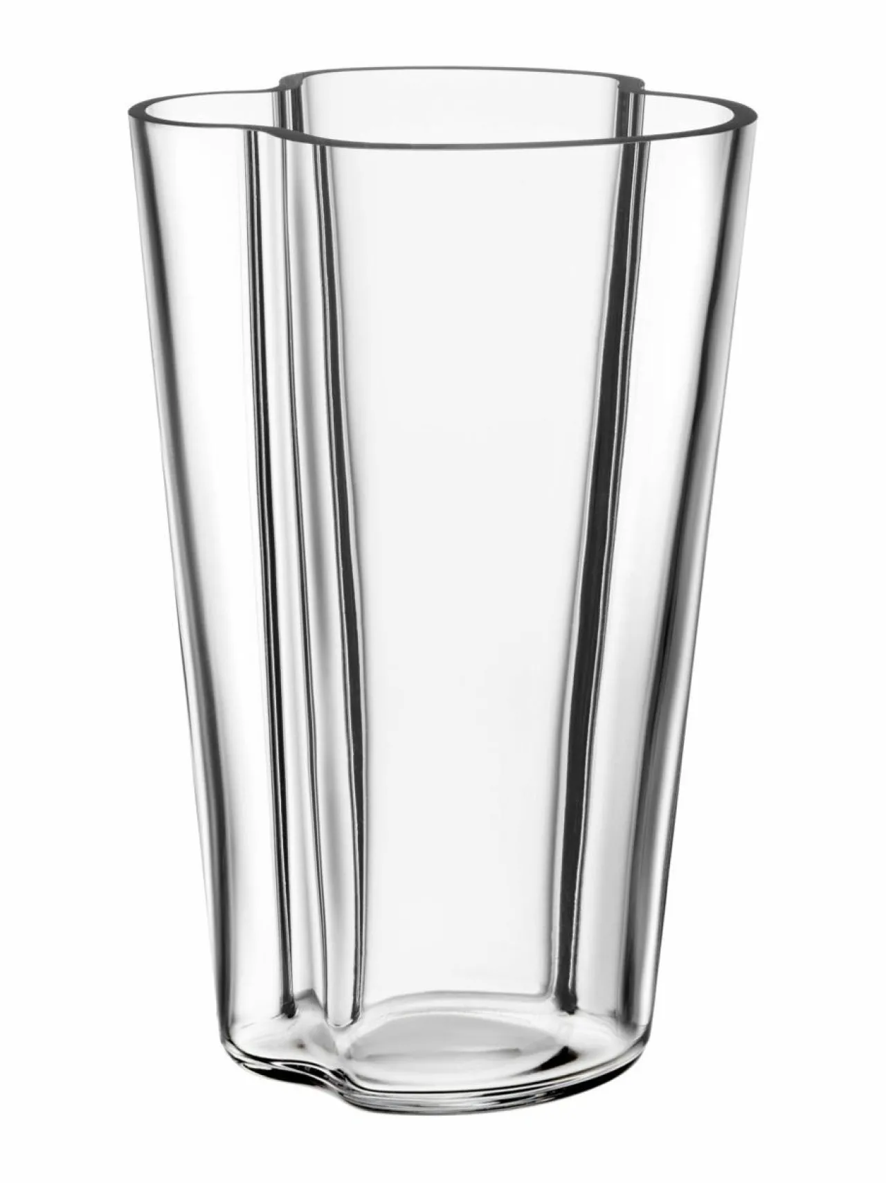 Alvar Aalto -kokoelman Aalto-maljakko on korkeudeltaan 220 mm. Suomalaisen muotoilun klassikko on materiaaliltaan käsinpestävää lasia.