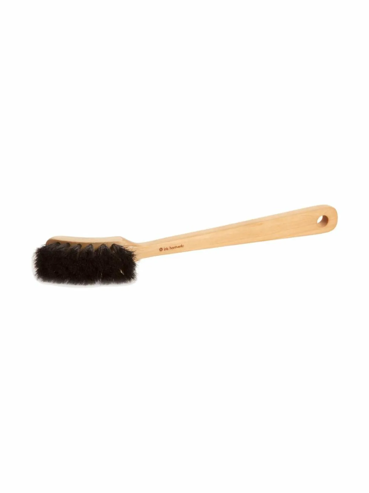 Koivusta valmistetussa tiskiharjassa on tummasta hevosenjouhesta tehty harjasosio, joka kapean muotonsa ansiosta sopii mainiosti lasien pesuun.