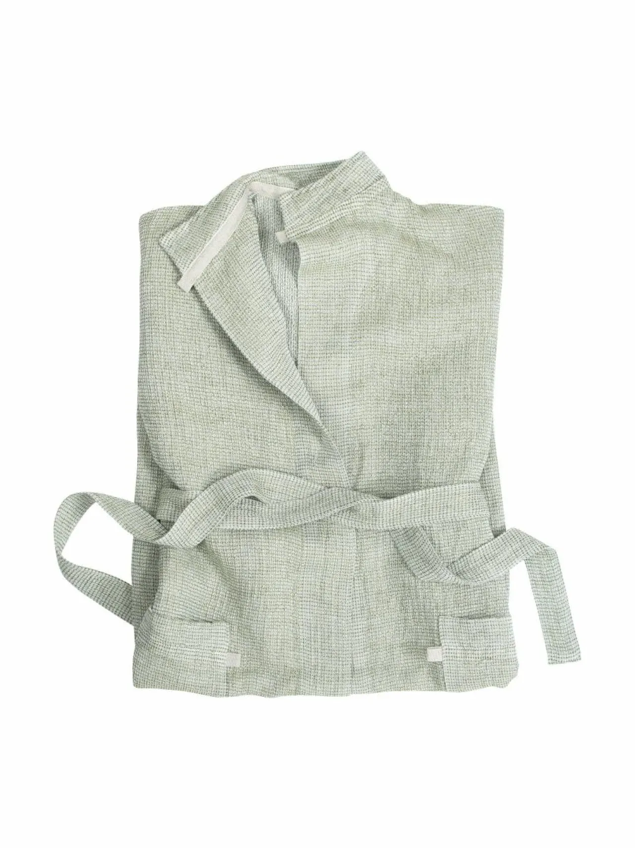 Rentoudu saunan tai suihkun jälkeen mukavassa kylpytakissa terassilla, parvekkeella tai ihan vain kotisohvalla. Vohvelikankaisessa kylpytakissa on kaksi avointa taskua ja vyötärölle kiedottava vyö. Pellavan, tencelin ja puuvillan sekoitteesta valmistettu kylpytakki on erittäin imukykyinen ja kuivuu nopeasti, joten sitä on hygieeninen käyttää.