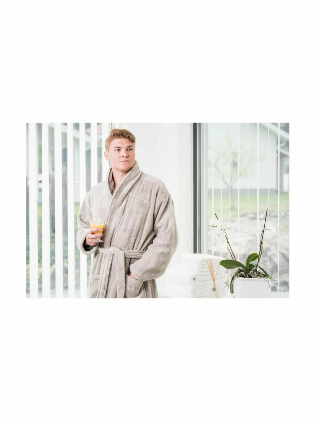 Ylellisen muhkea Luin Living -kylpytakki edustaa modernia suomalaista designia. Your Home – Your Spa -tuoteperheen oma, hemmottelevan pehmeä signature-materiaali on erittäin imukykyistä puuvillaa. Solmittava vyö on kiinni selkäpuolelta. Etuosan päällitaskuja somistavat logobrodeeraukset.
