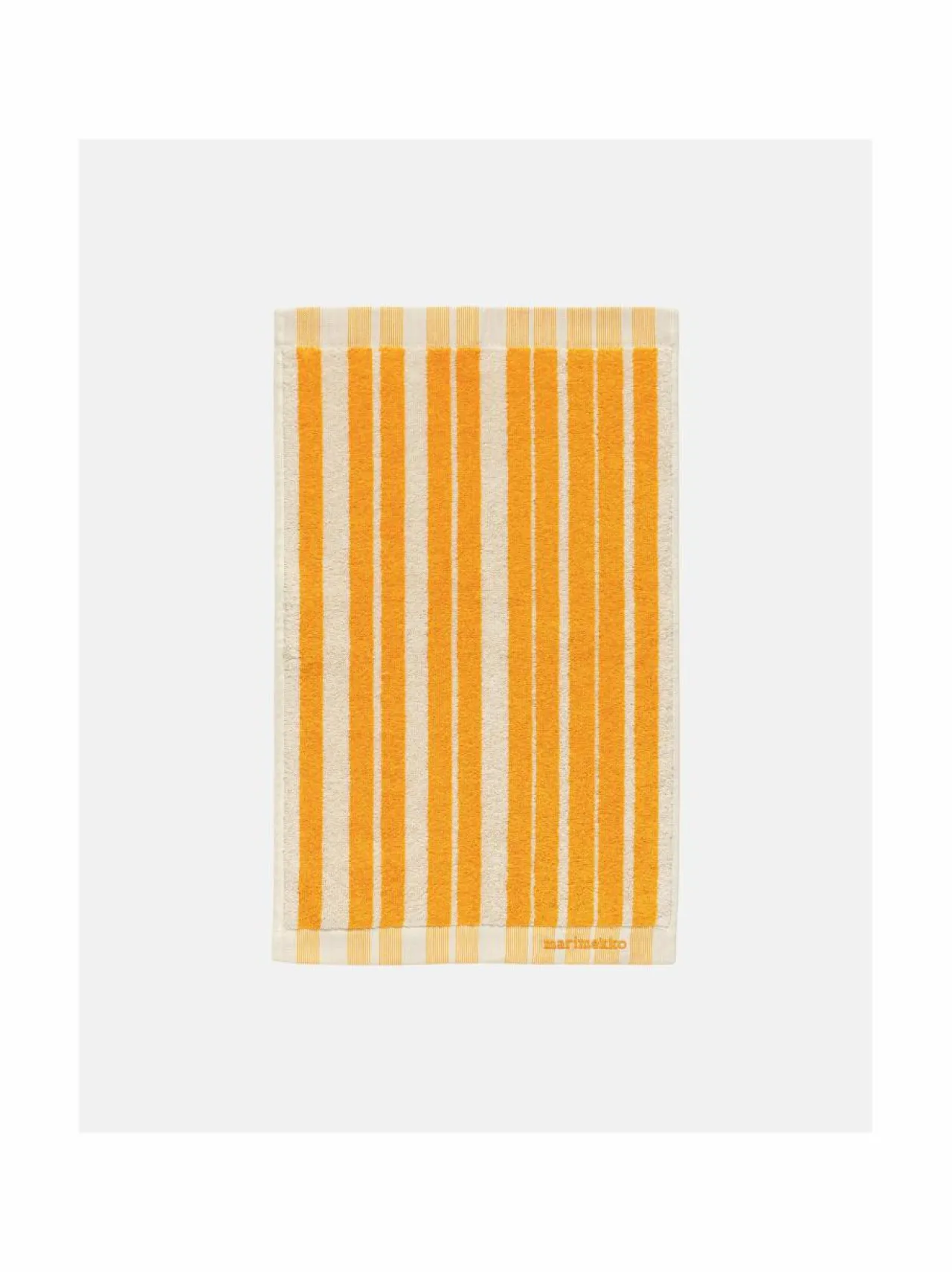 Materiaali100 % puuvilla PesuohjeetKonepesu Väri210 SAHRAM YELLOW, CREAM Avainsanatpuuvillapyyhe, raidallinen pyyhe, kylpypyyhe, käsipyyhe, pyyhkeet, marimekko