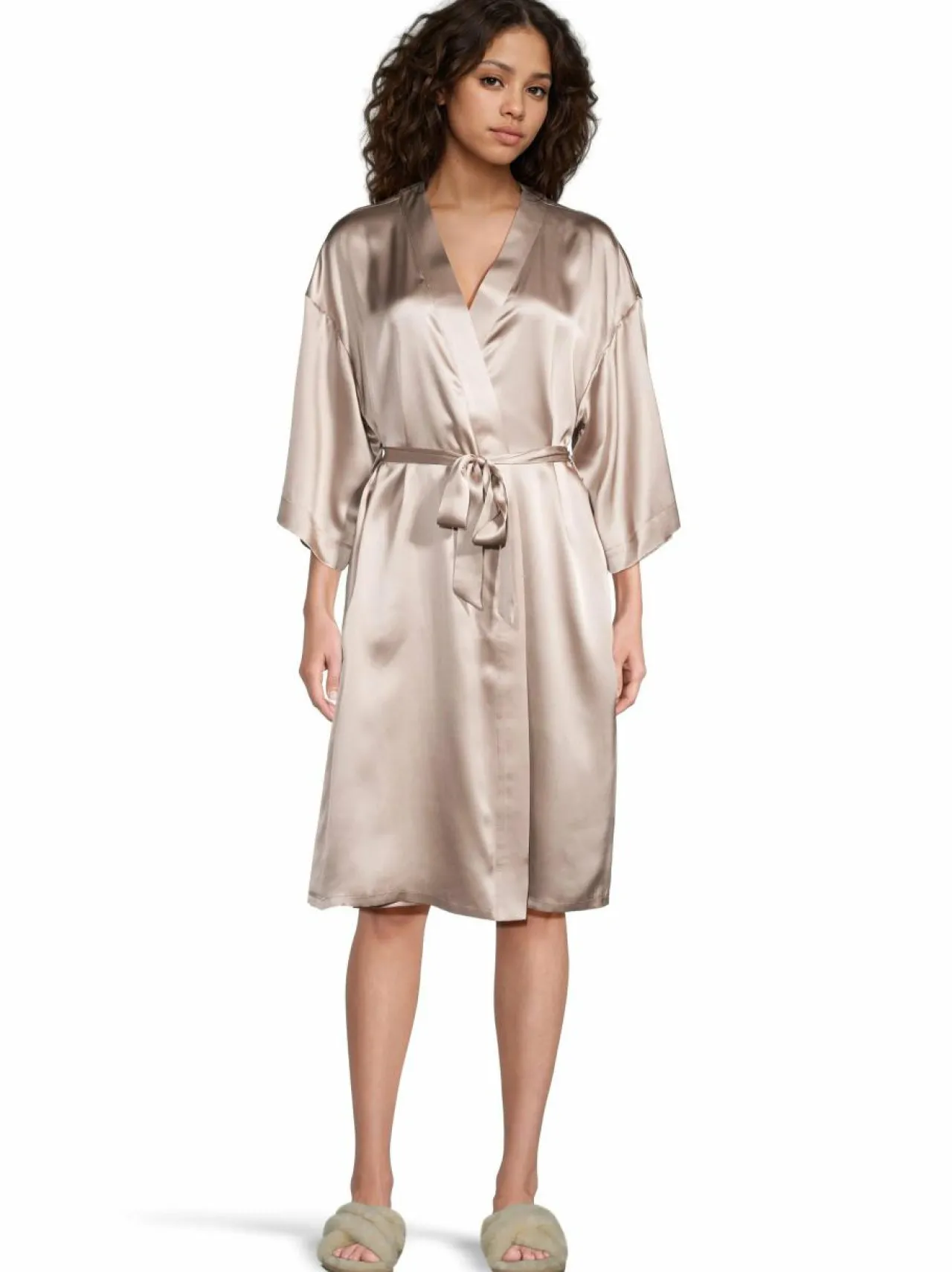 Kylpyhuonetekstiilit|Stockmann Silk Audrey-silkkiaamutakki TAUPE
