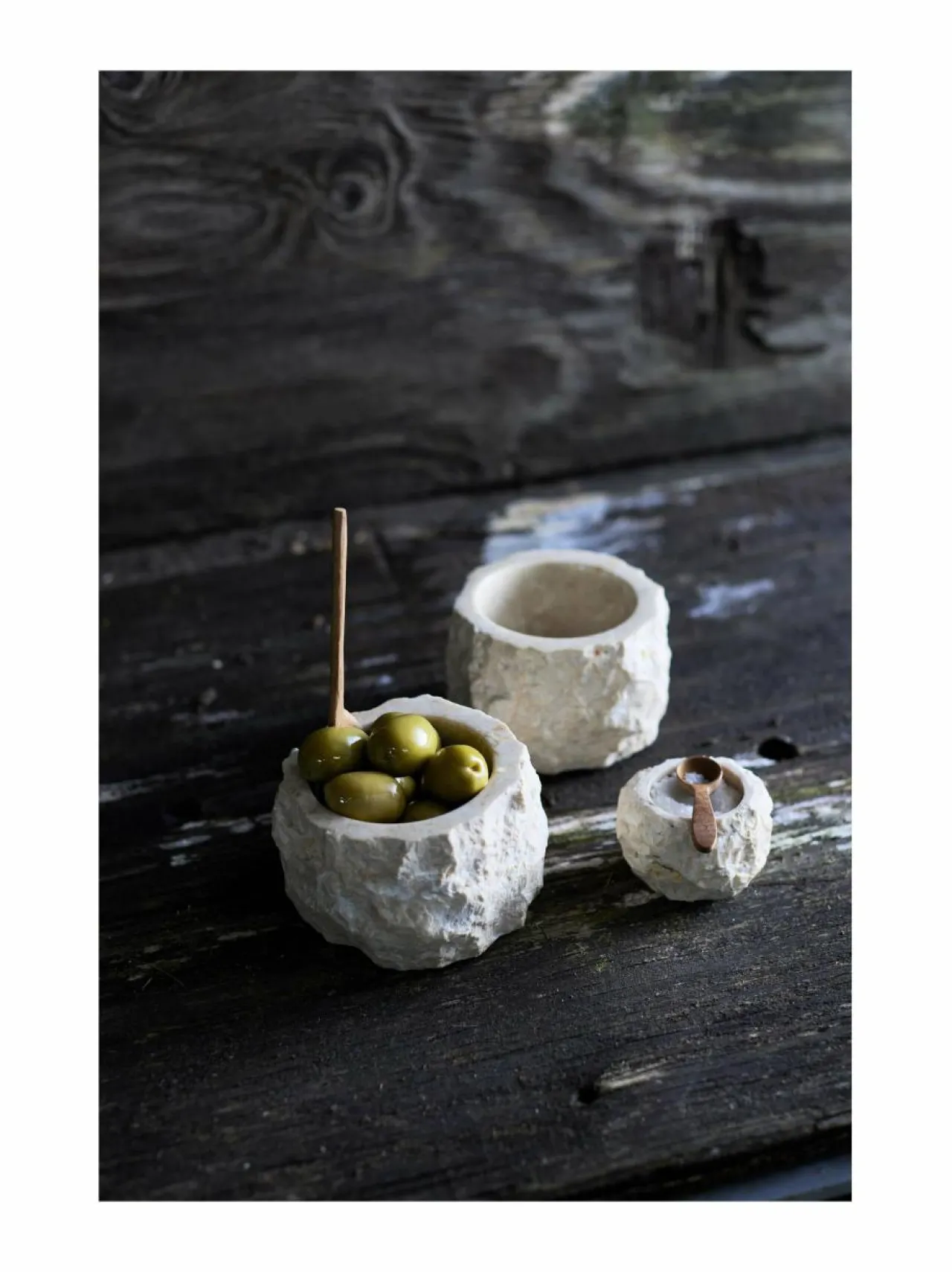 Batu-kynttilälyhty on valmistettu marmorista, joka on peräisin Indonesian vuorenrinteeltä. Marmori on tunnettu kauniista sävyistään ja vivahteistaan. Rustiikkinen tuikkukynttilälyhty on muotoiltu käsin. Batu-nimi on saanut inspiraationsa sen veistoksellisesta ilmeestä ja se tarkoittaa kiveä indonesian kielessä. Jokaisessa lyhdyssä on oma, ainutlaatuinen ilmeensä marmorikiven lunnollisen vaihtelun ansiosta. Kynttilänjalka tuo hehkua sisustukseesi. Batu sopii ikkunalaudalle, kylpyhuoneeseen tai pöytäasetelman osaksi luomaan viihtyisää ja ylellistä tunnelmaa. Batu-teekynttilälyhty myydään yksittäin. Tuote on valmistettu 100 % marmorista. Koko: 7 x 4 cm