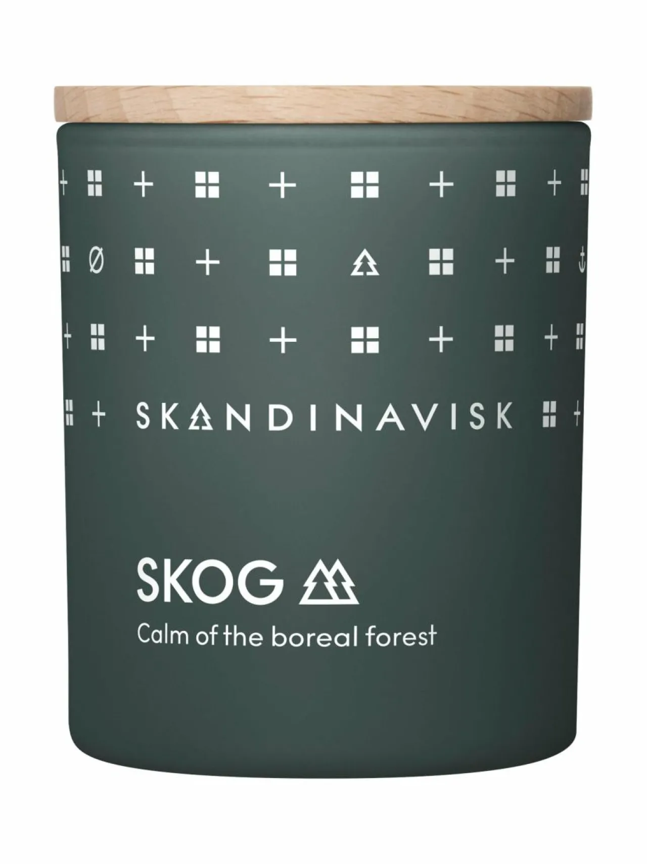 Skandinavisk Skog -tuoksukynttilä levittää huoneilmaan raikasta tuoksua, joka kuljettaa Pohjolan uljaisiin metsiin. Tuoksussa voi aistia muun muassa männynneulasia, kuusenkäpyjä, koivunmahlaa ja kieloa. Kynttilän paloaika on noin 20 tuntia. Vegaaninen.