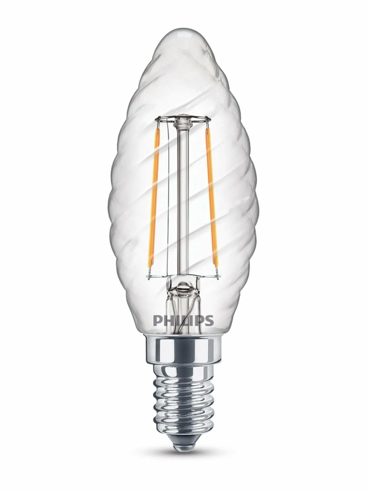 Kauniisti muotoillussa Philips LED Candle -kynttilälampussa on lämmin, valkoinen valo. Valovirta 250 lumenia vastaa noin 25 W hehkulamppua. Lampun energiatehokkuusluokka on A++ ja käyttöikä jopa 15 000 tuntia.