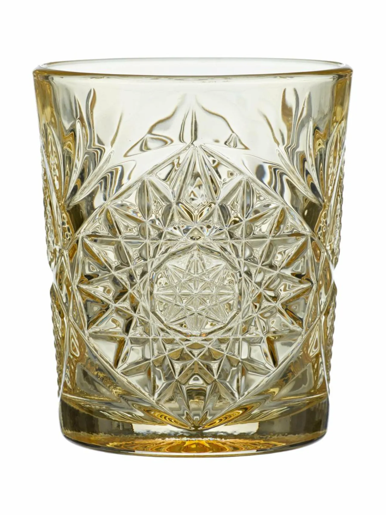 Kauniinväristä juomalasia kiertävät upeat Hobstar-kuvioleikkaukset, joilla koristeltuja laseja Libbey loi jo 1900-luvun alun amerikkalaisen kristallilasimuotoilun kultakaudella.