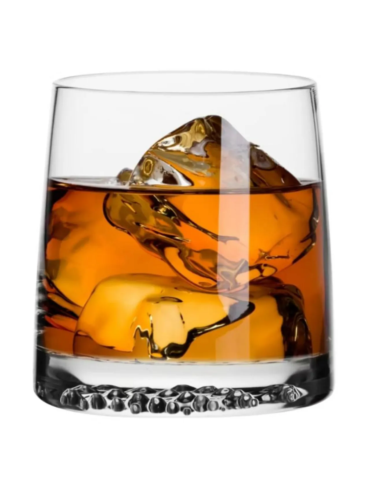 Upea, paksulla helmiäispohjalla oleva viskilasi.