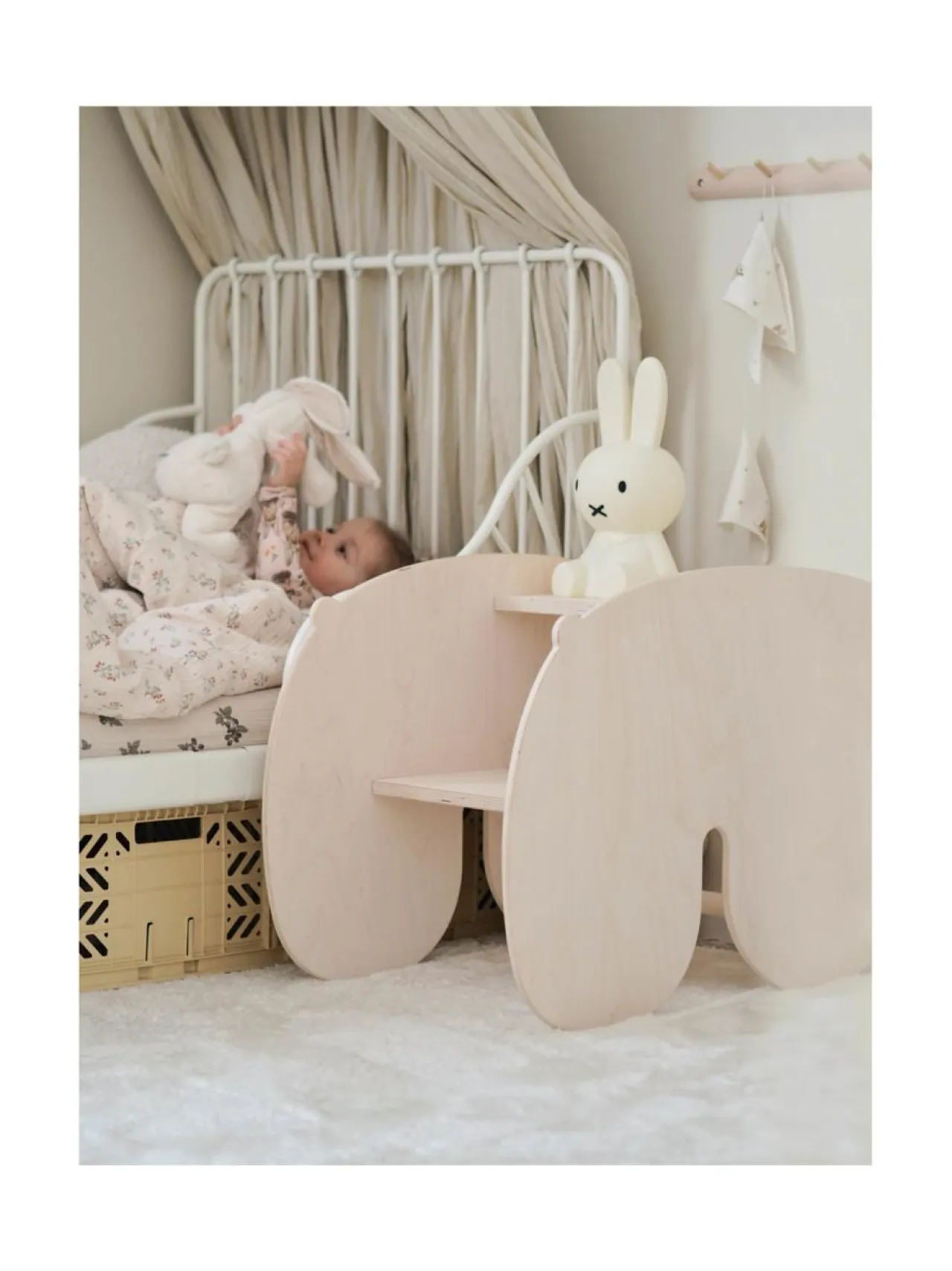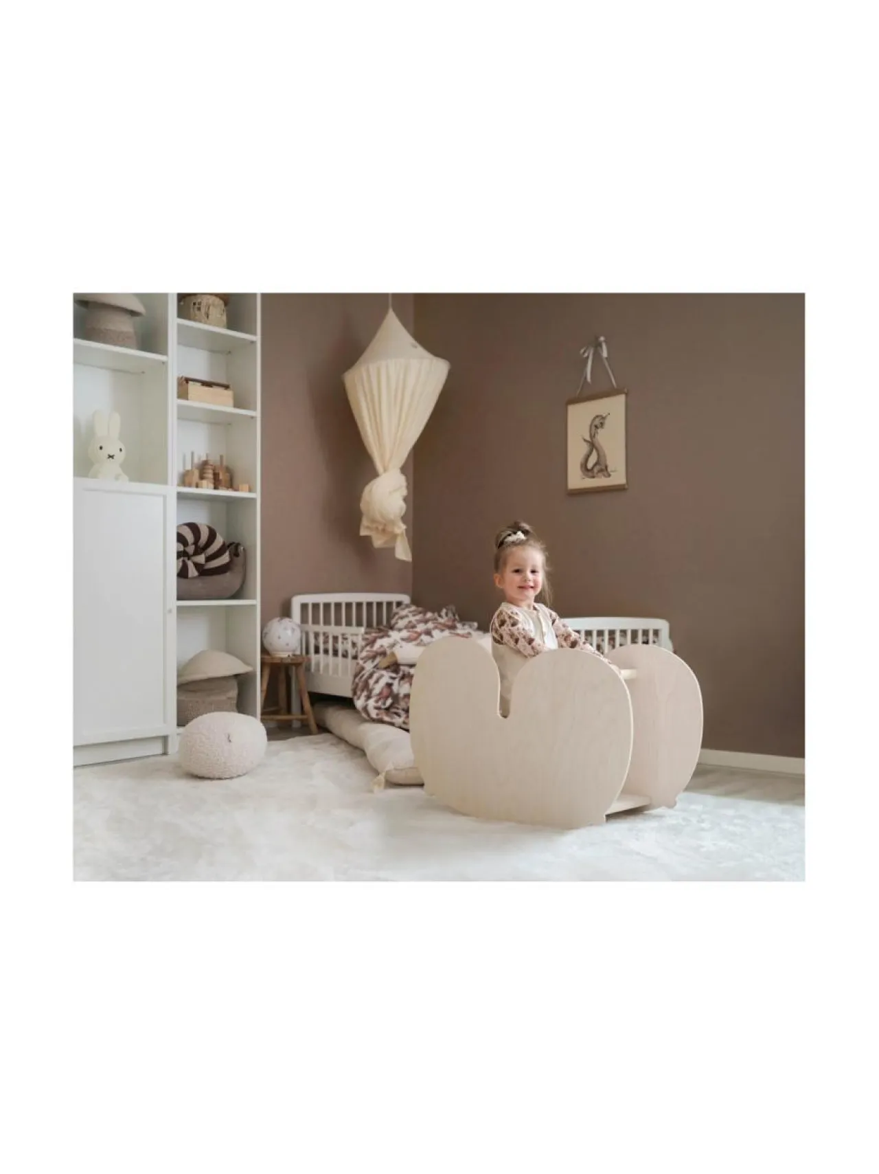 NUPPU on aivan uudenlainen keinuhevonen. Sen leikittelevä ja pehmeän abstrakti muotokieli mahdollistaa tuotteen käyttämisen myös toisin päin, jolloin sitä voi käyttää muihinkin tarkoituksiin. Kun NUPPU käännetään ympäri, se muuntautuu keinuhevosesta pienten lasten pöydäksi ja penkiksi, tai suloiseksi yöpöydäksi.