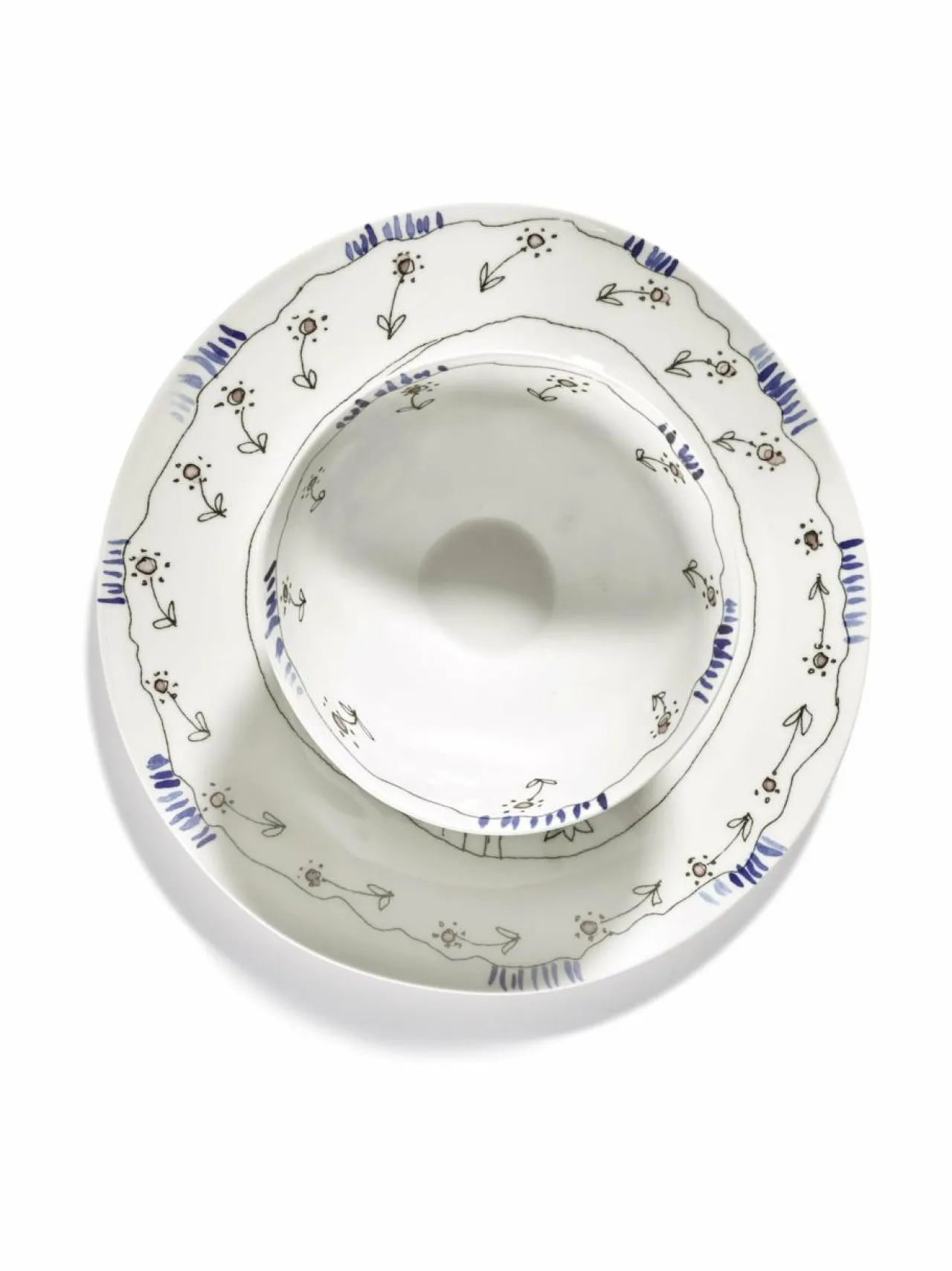 Serax ja Marni tuovat markkinoille tyylikkään, 120-osaisen posliiniastiasetin, joka juhlistaa italialaisen muotitalon taiteellista visiota. Marnin luova johtaja Francesco Risso suunnitteli kukka-aiheen, joka on saanut inspiraationsa luonnosta. Tarroja käytetään kuvion kiinnittämiseen hienoon luuposliiniin, jonka jälkeen se lasitetaan, jotta se kestää kulutusta. Lautasten, kulhojen, kuppien, lautasten ja teekannujen hieman epäsymmetriset muodot vain korostavat käsintehdyn posliinin laatua.- Settiin kuuluu kaksi kappaletta kulhoja.