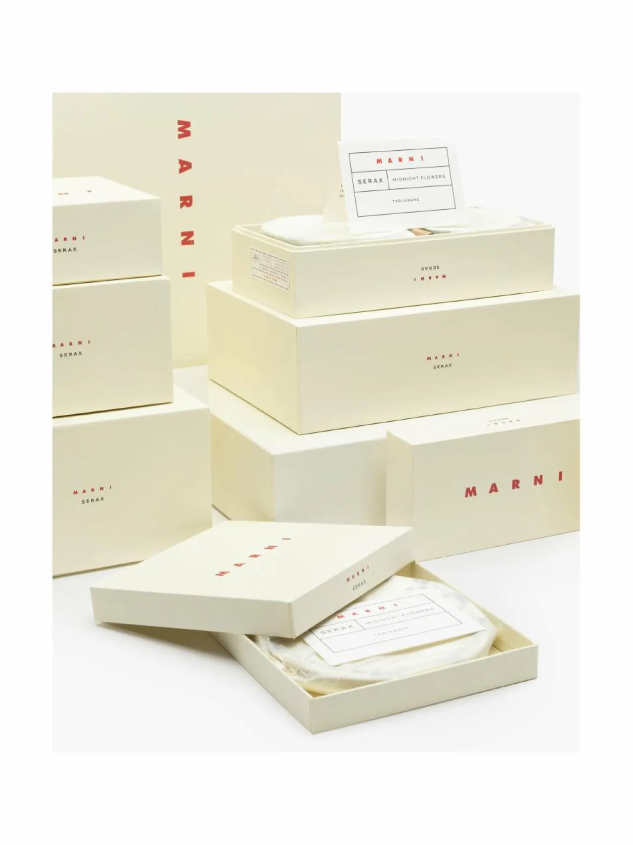 Serax ja Marni tuovat markkinoille tyylikkään, 120-osaisen posliiniastiasetin, joka juhlistaa italialaisen muotitalon taiteellista visiota. Marnin luova johtaja Francesco Risso suunnitteli kukka-aiheen, joka on saanut inspiraationsa luonnosta.Tarroja käytetään kuvion kiinnittämiseen hienoon luuposliiniin, jonka jälkeen se lasitetaan, jotta se kestää kulutusta. Lautasten, kulhojen, kuppien, lautasten ja teekannujen hieman epäsymmetriset muodot vain korostavat käsintehdyn posliinin laatua.