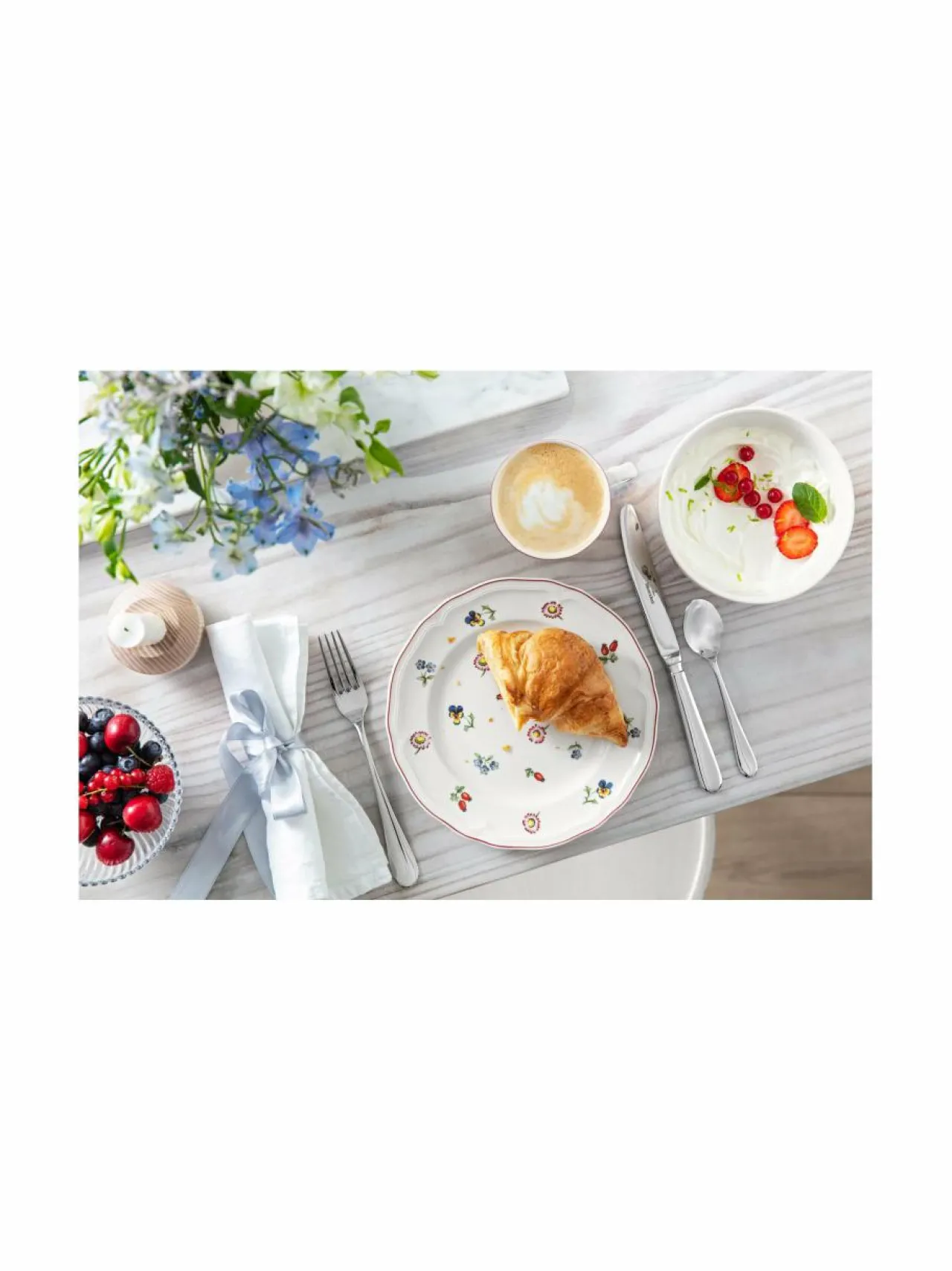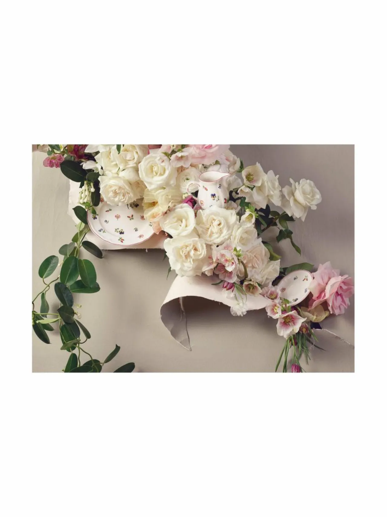 Kauniin kukkaisen Petite Fleur -sarjan astiat on valmistettu lasitetusta posliinista. Lautasessa on kohotettu reuna raidallisella ääriviivalla sekä eri kukkien kuviot.