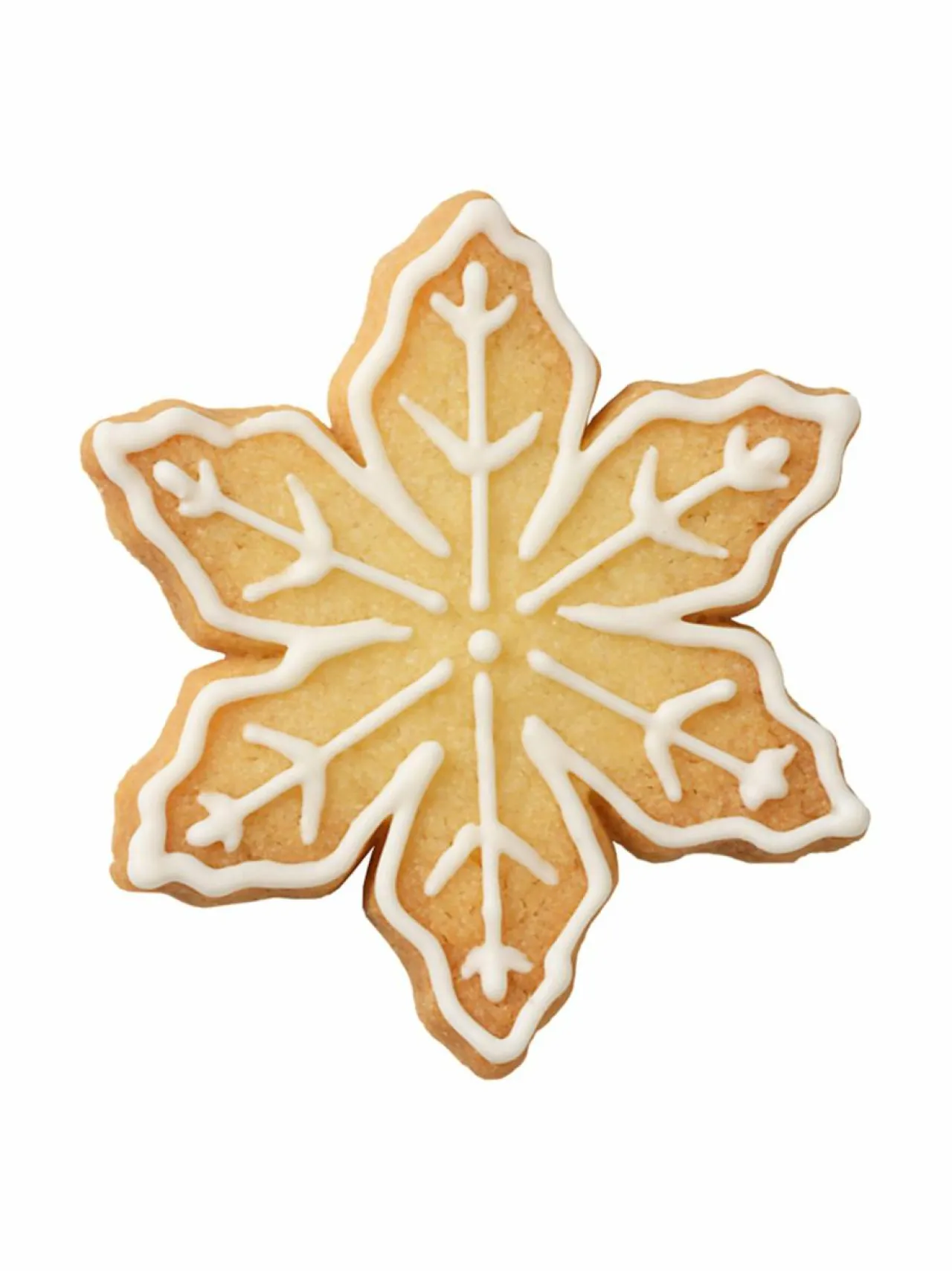 Ruostumattomasta teräksestä valmistetulla Birkmann-piparkakkumuotilla syntyvät lumihiutaleen muotoiset piparkakut herkkusuiden iloksi.