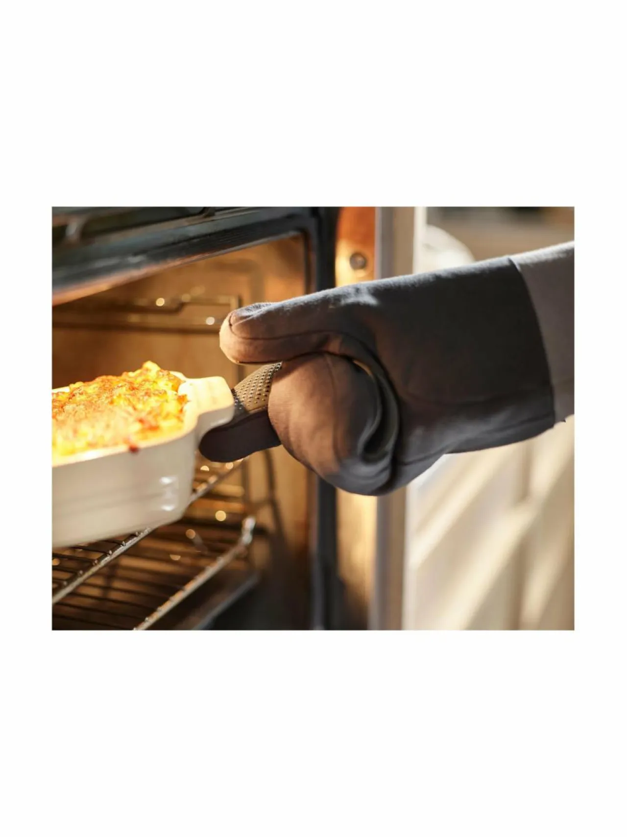 Joseph Josephin innovatiivinen uunikinnas on valmistettu puuvillasta, joka on pehmeä ja mukava käyttää, mutta samalla tarpeeksi kestävä suojaamaan kuumuudelta. Pinnoitettu silikonialue tarjoaa erinomaista pitoa, jotta voit käsitellä kuumia uunipeltejä, kattiloita ja paistinpannuja turvallisesti ja ilman liukastumisen vaaraa.