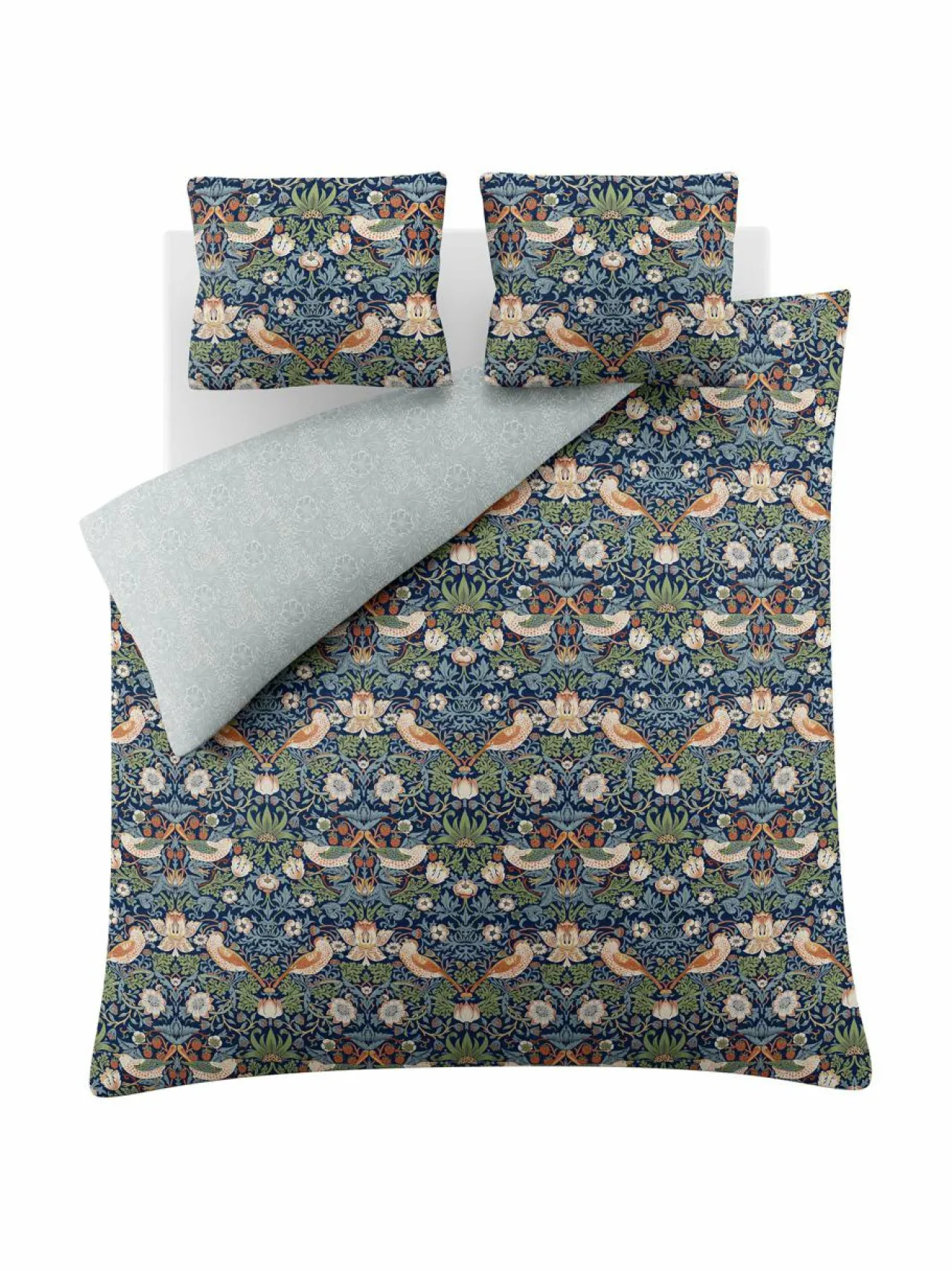 Liinavaatteet|William Morris At Home Strawberry Thief -satiinipussilakanasetti 14 INDIGO