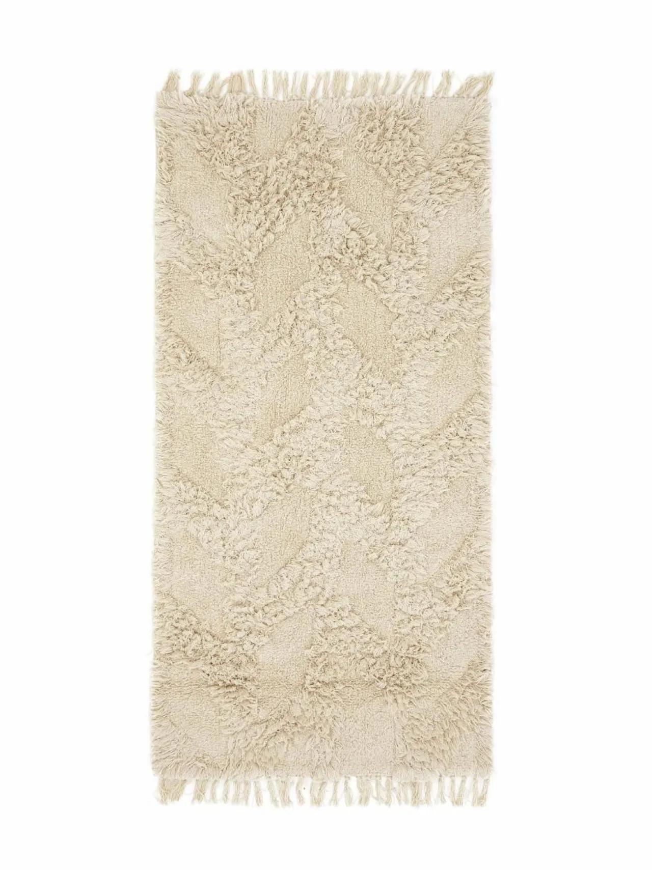 Pörröinen ja pehmeä matto, joka lämmittää jalkojasi. Valmistettu tuftatulla tekniikalla. Hapsutetut reunat luovat hienostuneen mutta leikkisän kosketuksen.