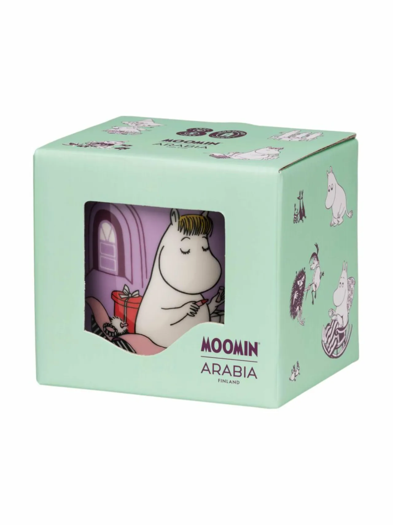 Niiskuneiti-muki upeassa 80-vuotisjuhlapakkauksessa. Tämä muki ilmentää herkkyyttä ja iloa. Sen pinnalla on ihastuttava kuvio, joka herättää tunteita ja tarjoaa iloa jokaiseen päivään. Muki on valmistettu kestävästä posliinista, mikä tekee siitä ihanteellisen päivittäiseen käyttöön. Sen kaunis muotoilu ja käytännöllisyys tekevät siitä täydellisen lisän kahvi- tai teekuppikokoelmaasi.