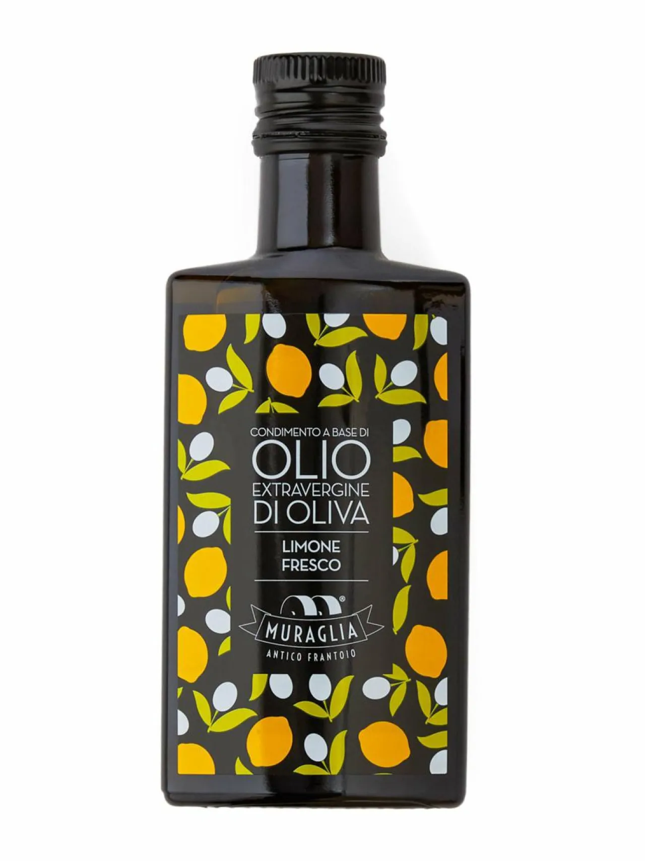 Frantoio Muraglias Lemon extra virgin olivolja är en citronsmakande och elegant kombination som passar bra till fiskrätter. Högkvalitativa Rocca Imperiale citroner har valts ut för citronolivoljan. Blandningen av smakerna av extra virgin olivolja, deras sammansmältning, sker under produktionsprocessen av aromatiska oljor, när ingredienserna håller ihop och pressas ihop med oliverna.