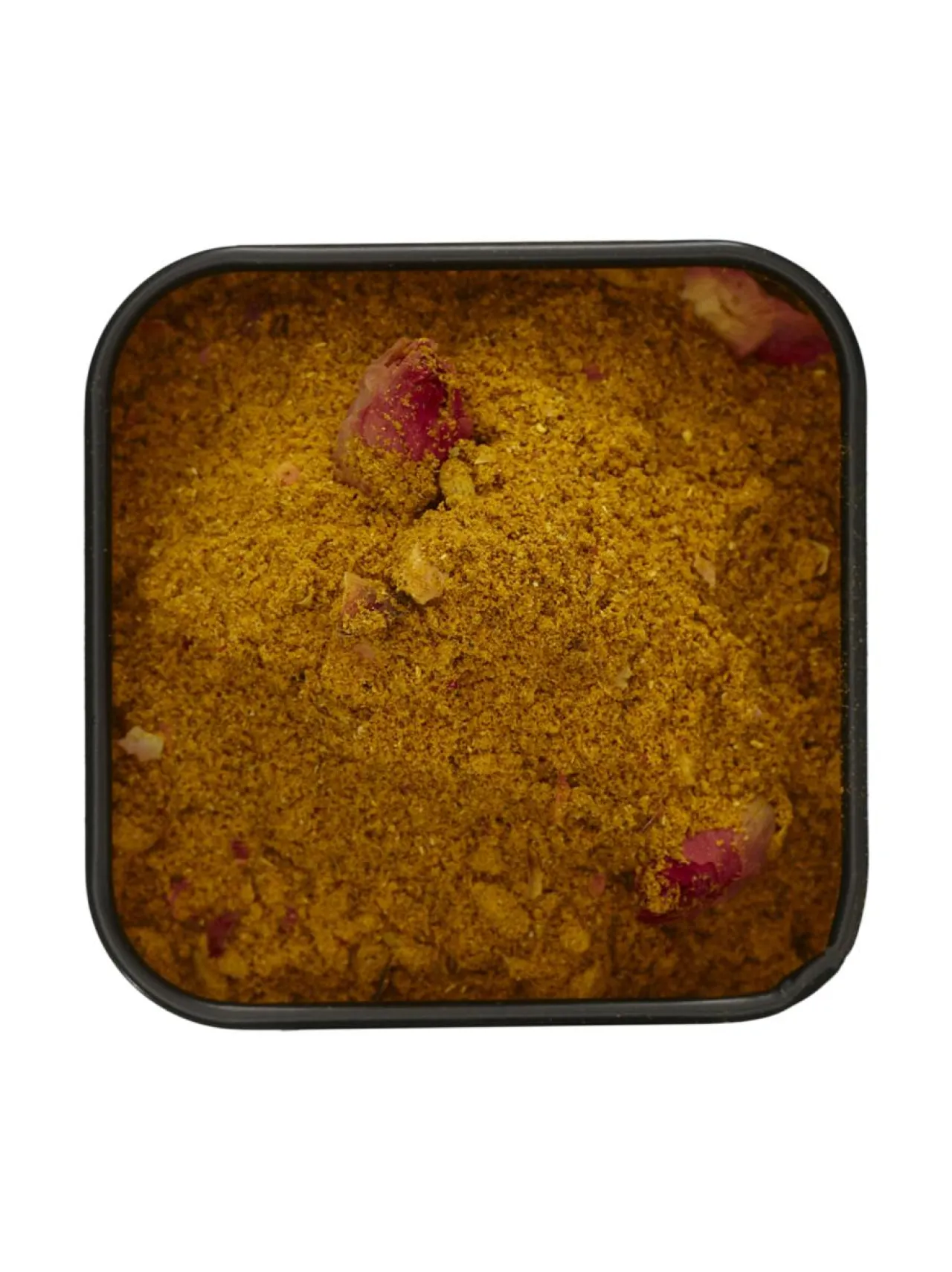 Marokkolaisen keittiön inspiroima mausteseos sisältää runsaasti lämpimiä mausteita johon on lisätty ruusun terälehtiä sekä laventelinkukkia. Antaa ihanaa makua lampaan lihalle, kuskusille, padoille ja tagineille.