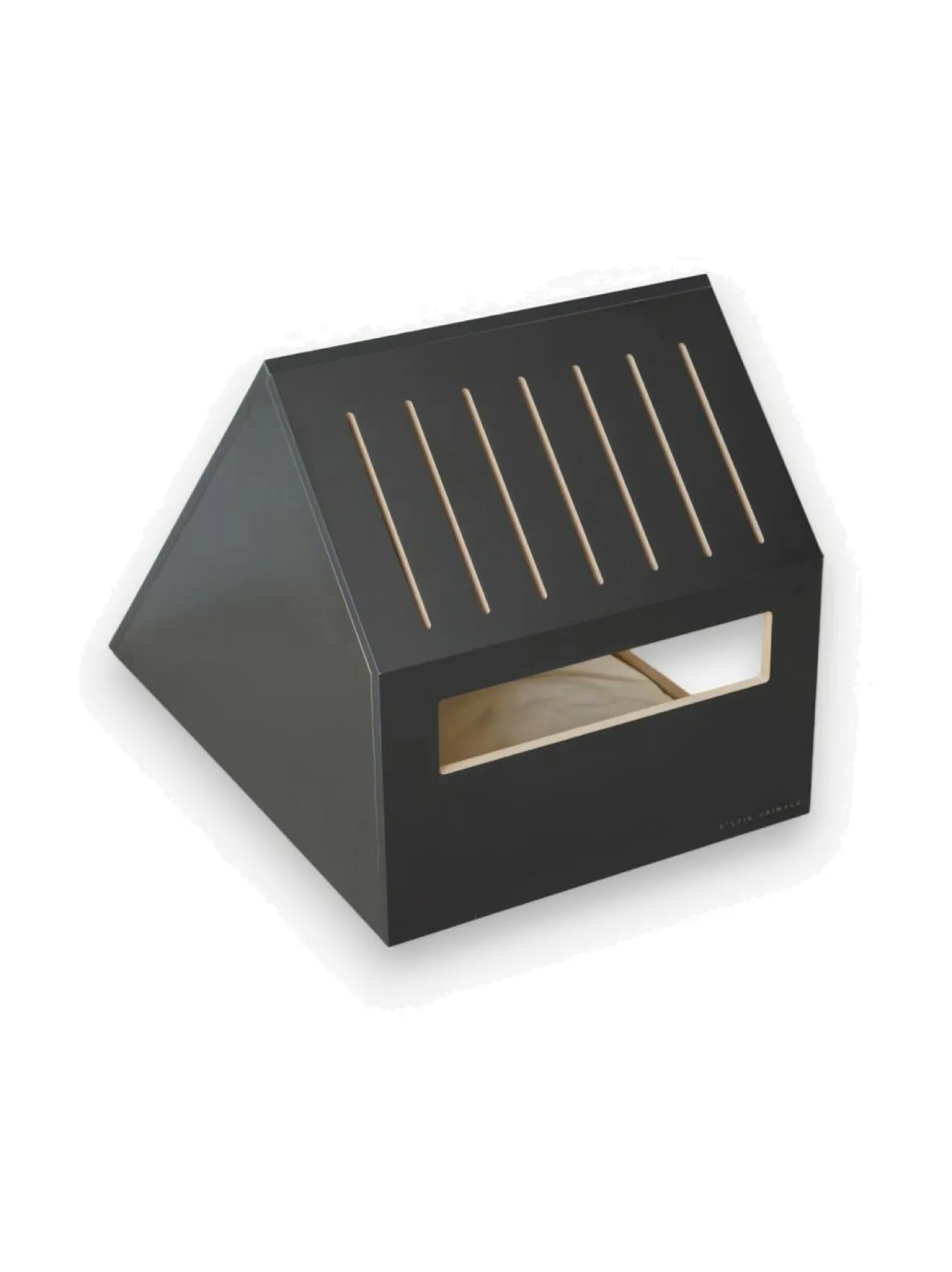 Tämä lemmikkitalo toimitetaan rakennussarjana. STUDIO ANIMAUX toimittaa sinulle huolella valitut, korkealaatuiset materiaalit, joista voit rakkaudella koota tämän talon kissallesi tai koirallesi. Voit myös asettaa talon korkeammalle, jos kissasi tykkää nukkua korkealla.